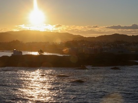 Die Freigabe des Schiffes war um 7:33h. Nach dem kleinen Frühstück wanderten wir gleich los in Richtung Kvalsvik Fyr und zu den Skulpturen Park Kvalsvik.