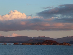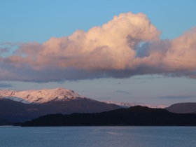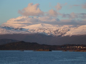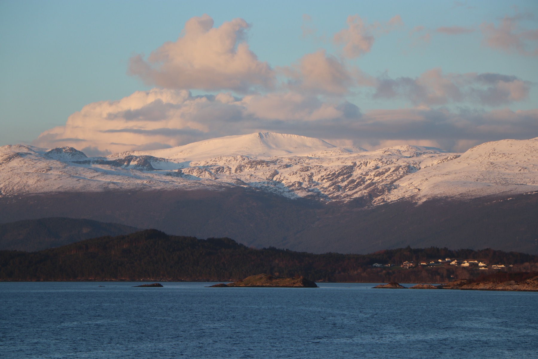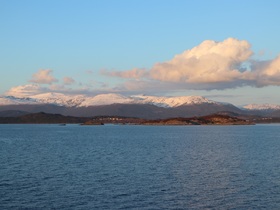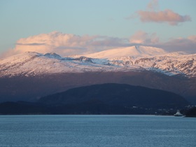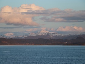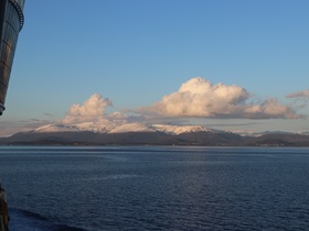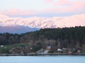 Es war eine grandiose Fjordfahrt. Ich hatte manchmal den Eindruck, dass wir in der nördlichen Passage von Leirvik der norwegische Fjorde eher in Prinz Christian Sund Passage in Grönland unterwegs waren. Enge Passagen und ein grandioser Fernblick auf die rötlich schimmernden, schneebedeckten Berge rundeten unseren Abend draußen aus unserem Balkon ab. Siehe Fotos …