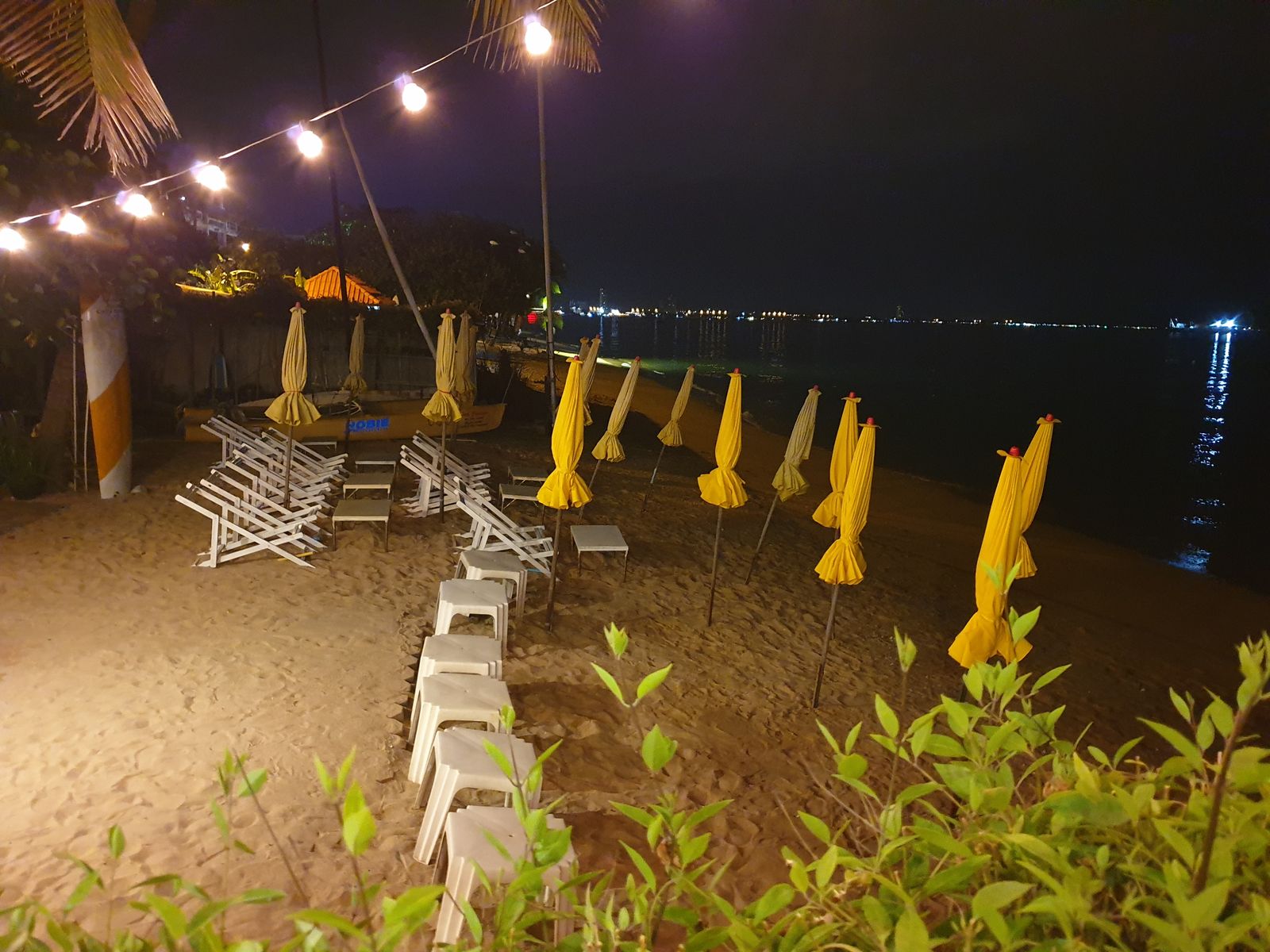 Das Restaurant des Hotels ist leer, eigentlich haben sie gerade keine Gäste, aber der Koch und die nette Bedienung sind wegen uns da. So ist, wenn man Beziehungen hat. Gerne denke ich an die Übernachtungen zurück. Das Hotel ist klein, der Strandabschnitt mit dem Restaurant überschaubar, die Besitzer so freundlich und das Essen sehr gut.