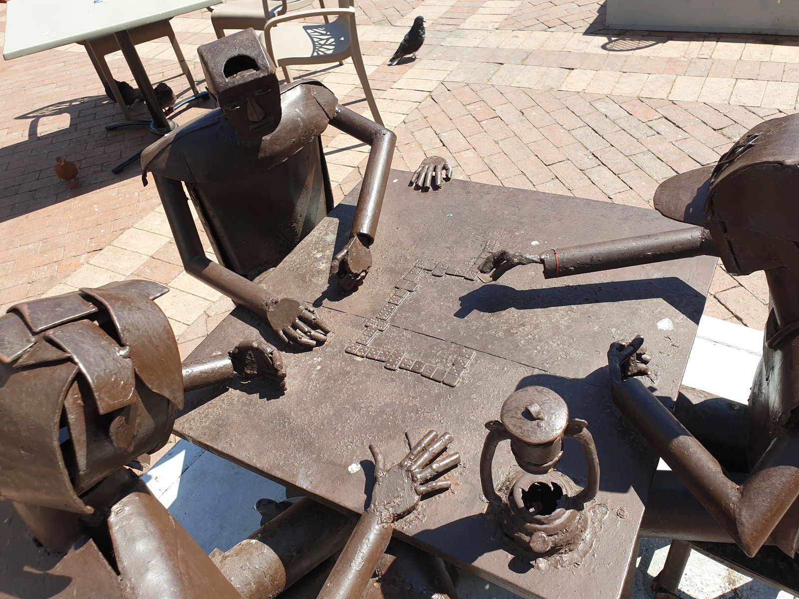 Und, ich sehe wieder nette Polizisten und schon bin ich fotografiert mit ihnen. Mein Mann lacht leise „Du und deine Liebe zu den Uniformierten“ … Auf dem riesigen Platz sind Kunstwerke zu sehen, die schon beeindruckend sind.
