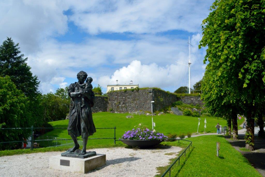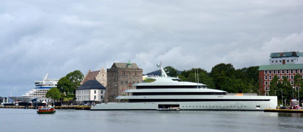 das treffend oder auch unbewusst 2009 auf dem Platz vor dem Fort Frederiksberg aufgestellt wurde. Das Fort selbst wurde in der zweiten Hälfte des 17. Jahrhunderts auf dem höchsten Punkt der Halbinsel Nordnes zum Schutz des Bergenser Hafens erbaut. Von diesem Platz aus schauten wir Richtung Nykirken und Håkonshalle. Und da war es – das weiße Schiff … die Astor, die sich einfach nicht von uns trennen wollte.