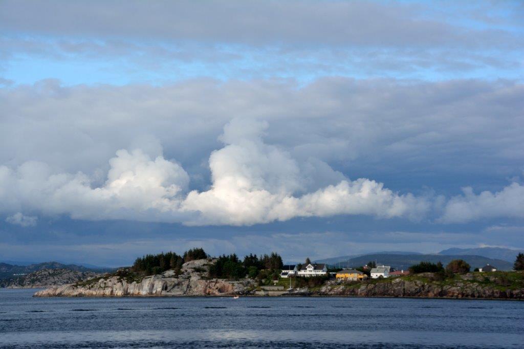Über uns weiterhin blauer Himmel – ganz weit hinter uns dicke Wolkenberge. Über Bergen. Sie störten uns nicht … Links und rechts von uns, pardon, an Steuer- und Backbord, tauchten viele kleine Inseln auf. Das Bergenser Schärengebiet. Auf vielen dieser Schären standen kleinere Häuser. Nur nicht neidisch werden … Man musste es den Norwegern lassen. Sie hatten Geschmack. Und auch den richtigen Blick, wo man seine schlichten und einfachen Hütten hinsetzen sollte …