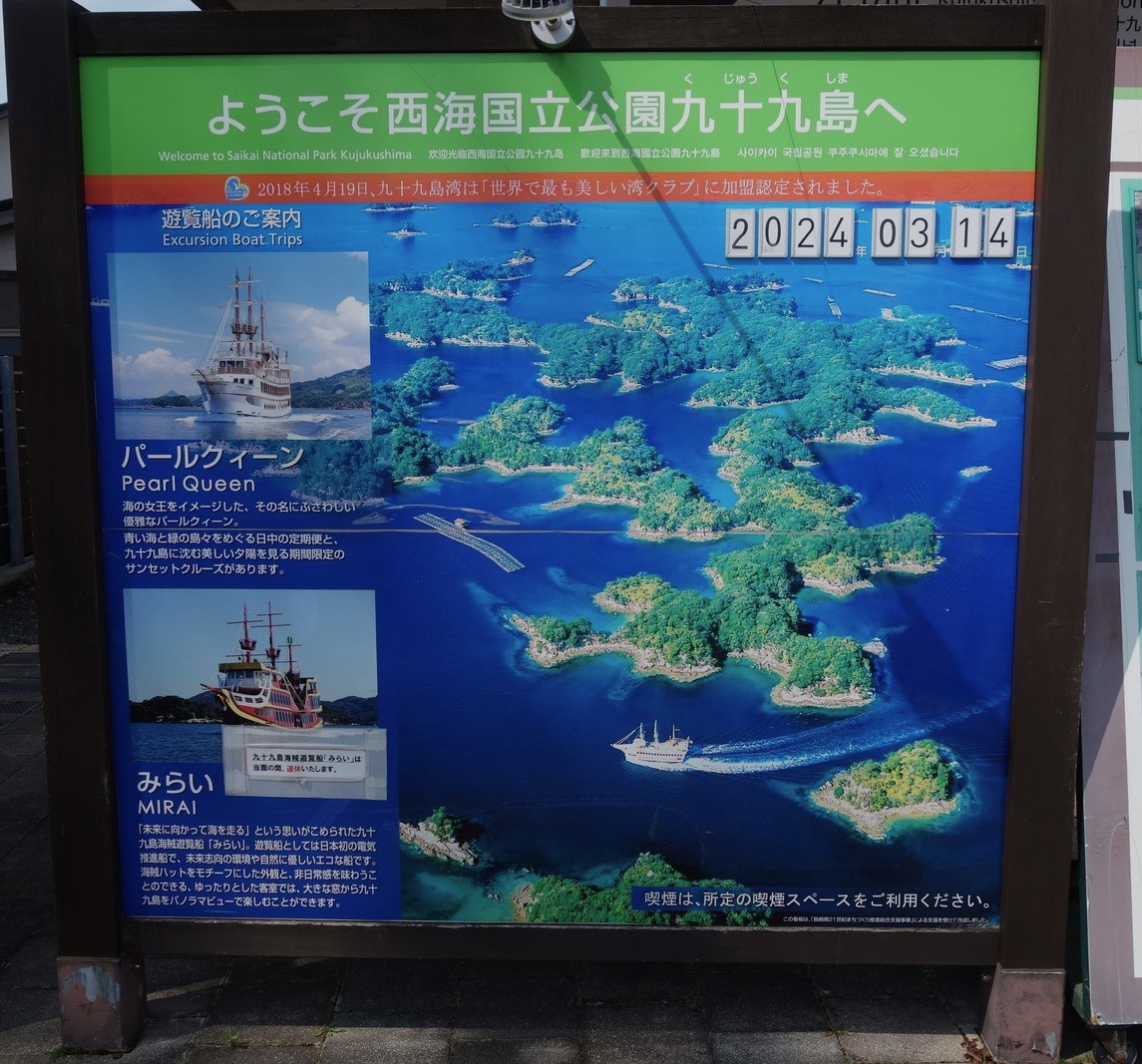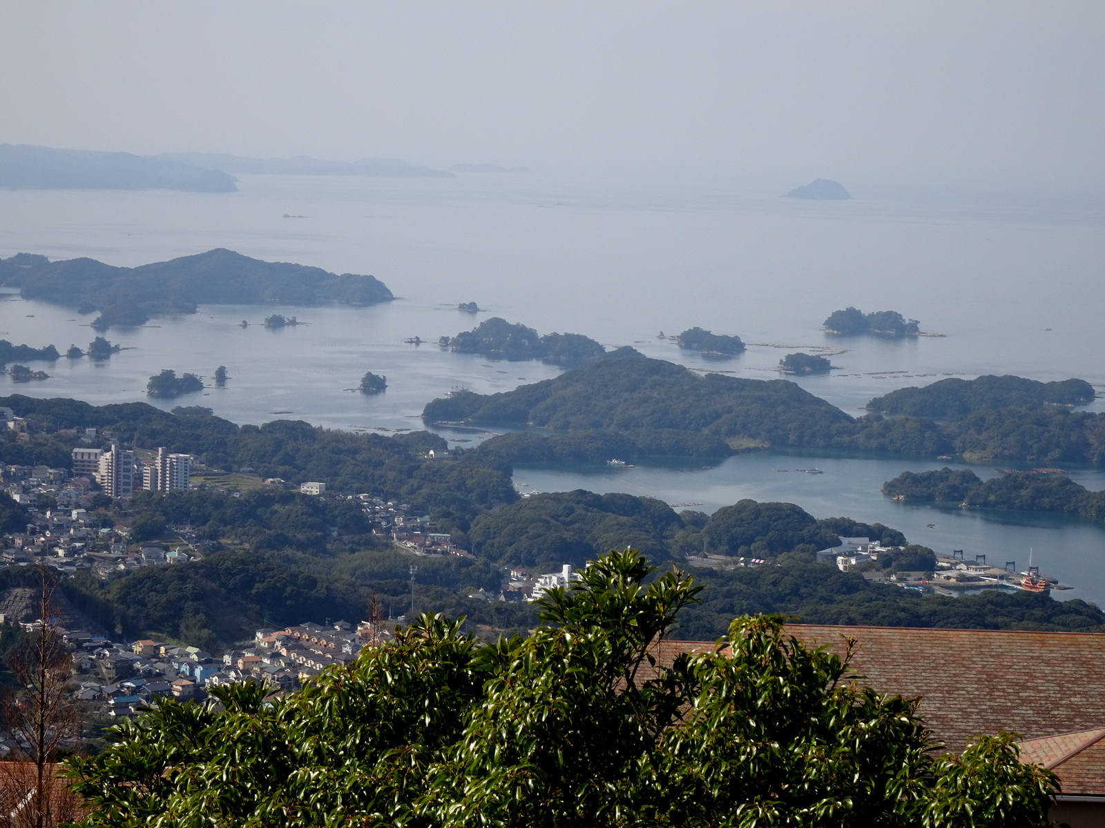Zwar steht in der Ausflugsbeschreibung, dass man über Nagasaki schaut, aber das ist nur die halbe Wahrheit. Es fehlt das entscheidende Wort „Präfektur“, damit es nicht zu falschen Erwartungen kommt. Von der Stadt Nagasaki sind wir gerade 1 Stunde Fahrt entfernt. Da sieht man nichts von. „Blick auf Teile der Präfektur“ wäre treffender.