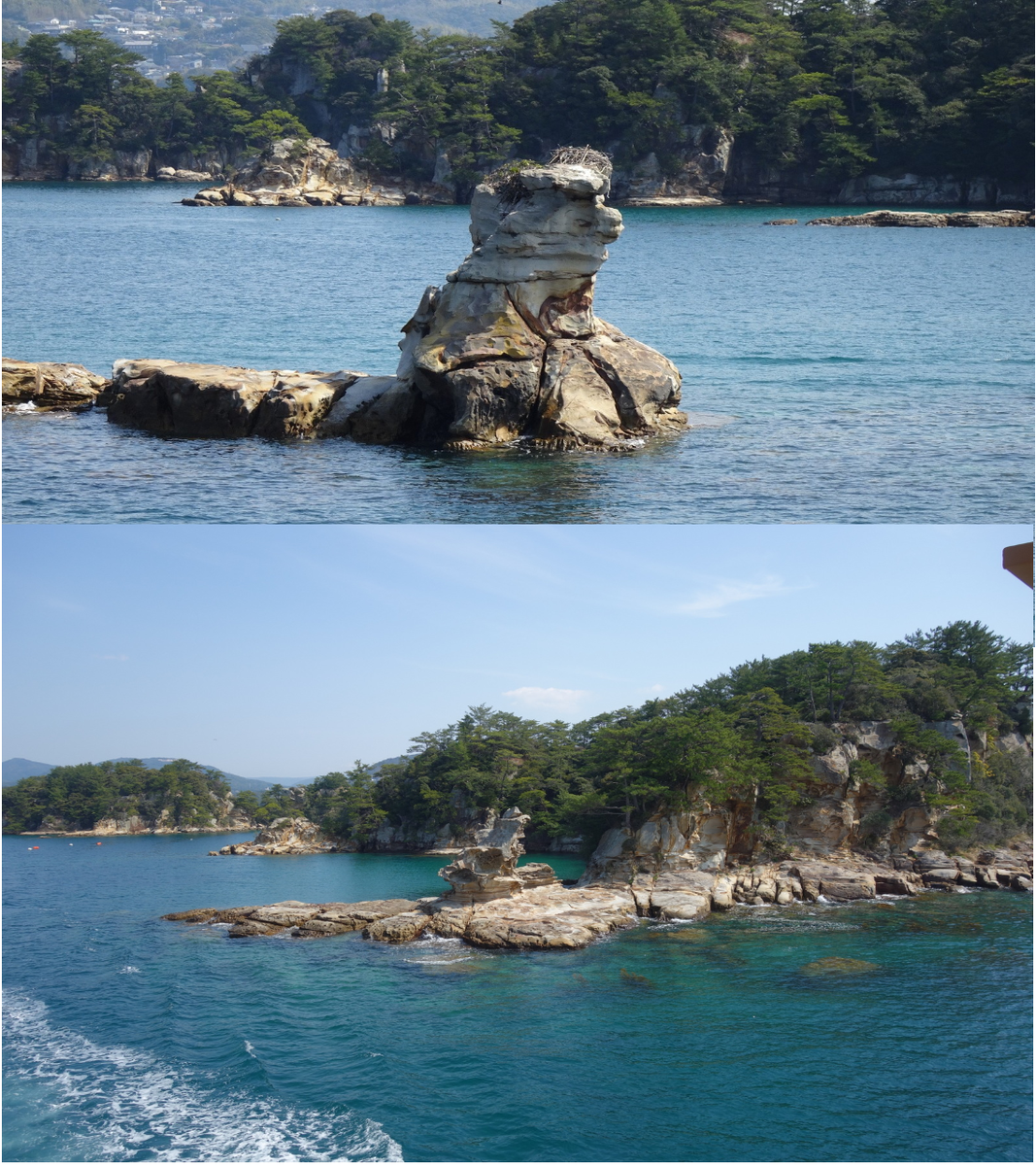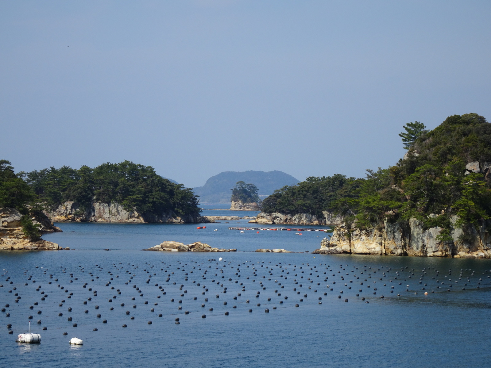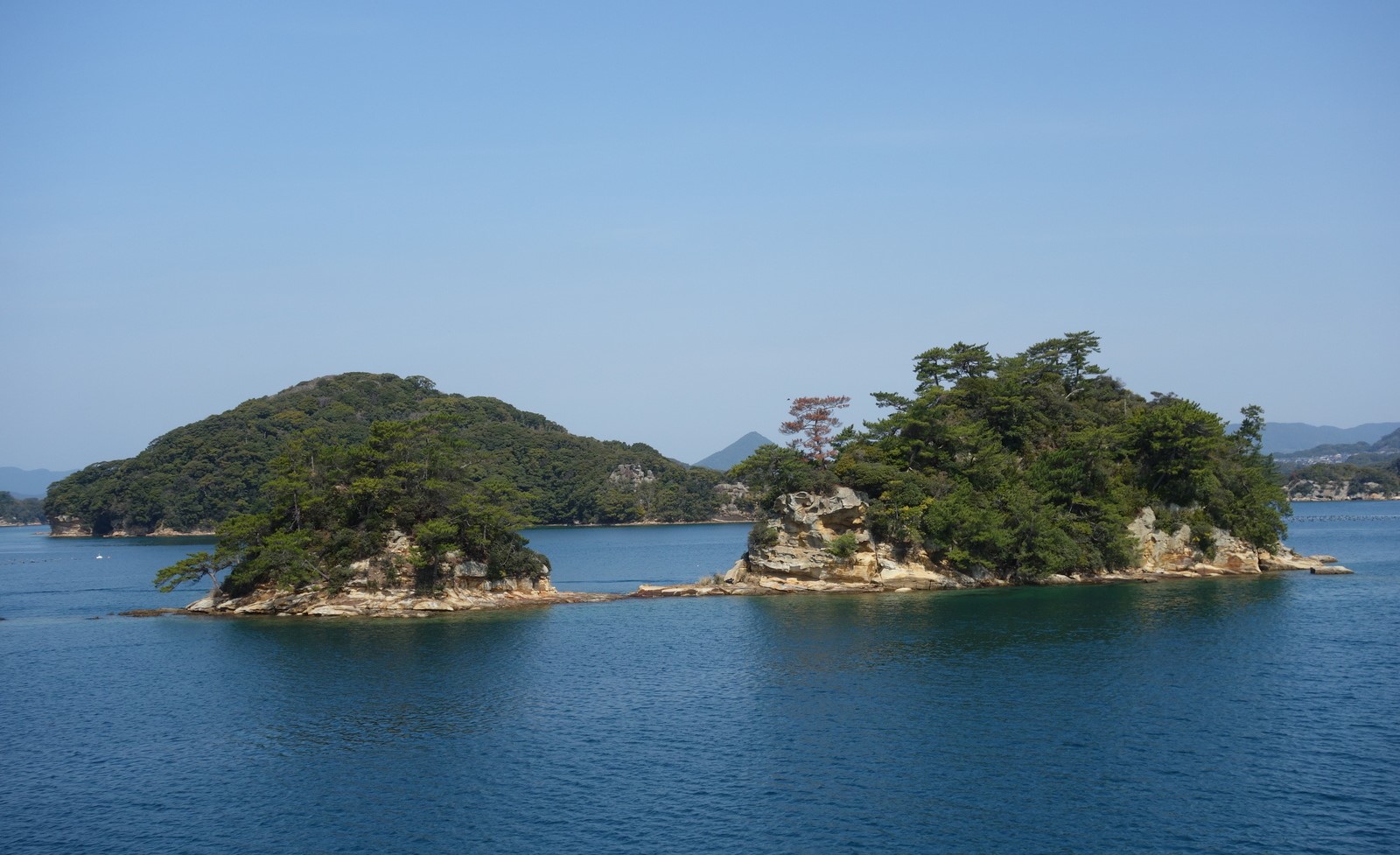 Und von dort oben kann man sie dann sehen, diese 99 Inseln vom Nationalpark. Wobei es eigentlich sowieso mehr Inseln sind, gezählt wohl so 208, aber 99 hört sich nicht nur viel besser an, sondern die Zahl steht in Japan für „unendlich/viel“ und wahrscheinlich hatten die vorher auch keinen gefunden der sie mal durchzählt.