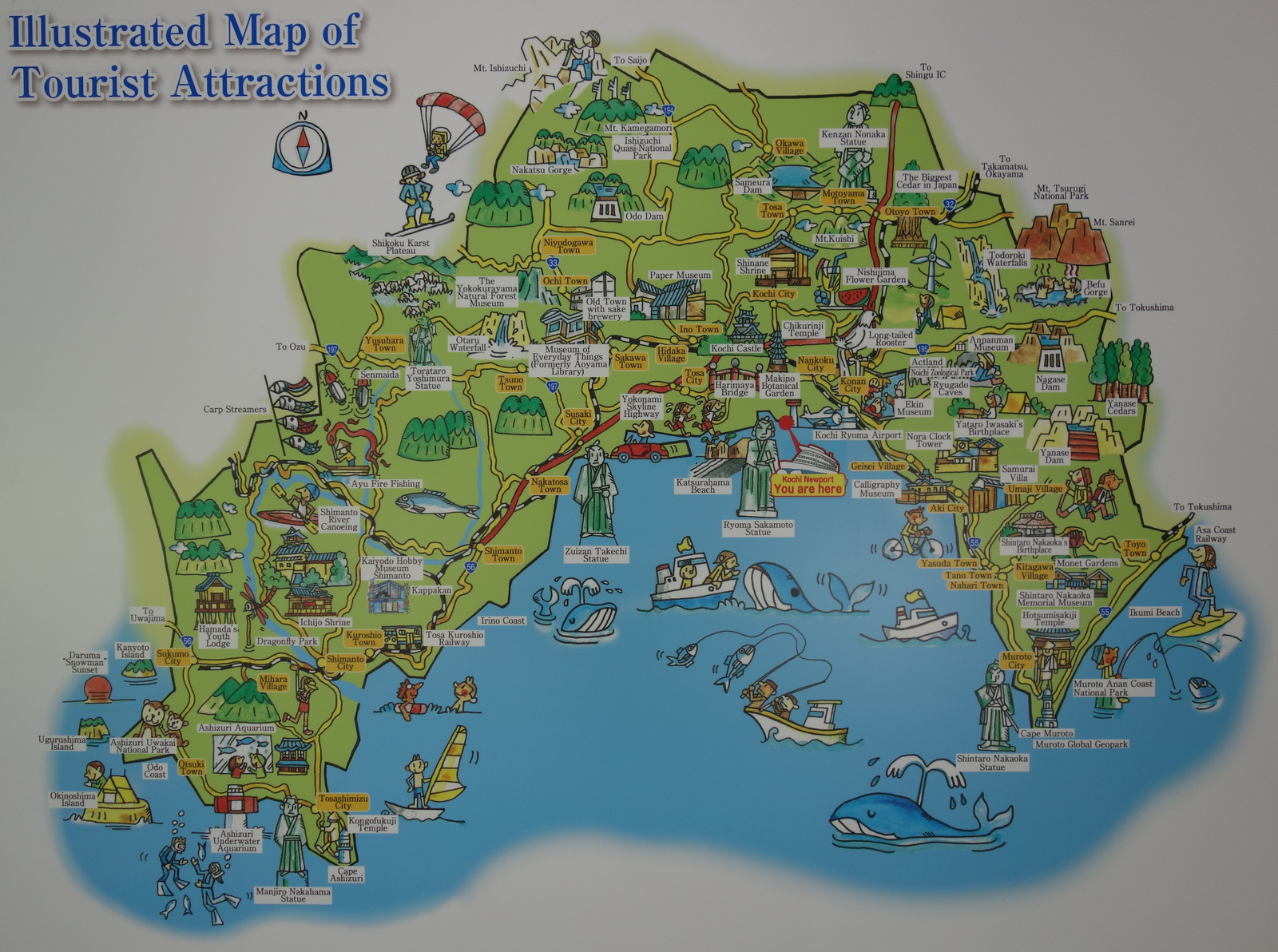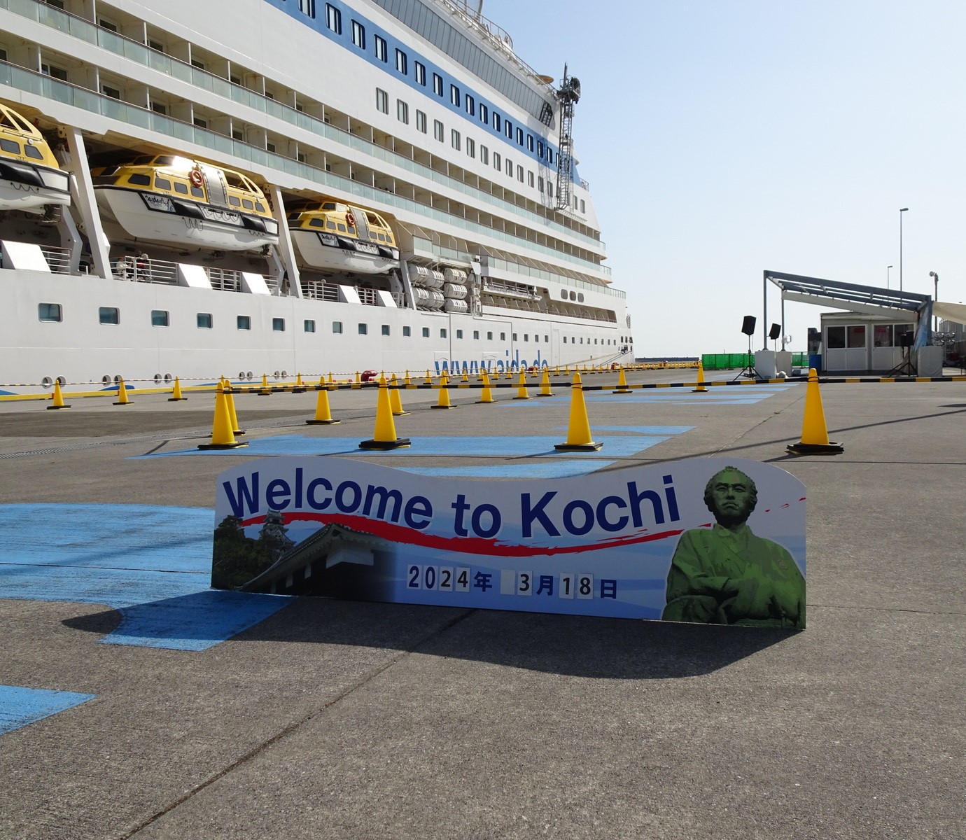 Sind wir ja eigentlich schon auf dem Weg von Nagasaki nach Tokio vorbeigefahren, aber die Routenplanung sieht vor, dass wir erst heute hier anlegen. Es ist Kochi, mal was Kleineres, eine Stadt mit etwa 300.000 Einwohnern.