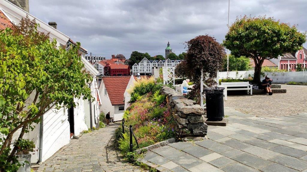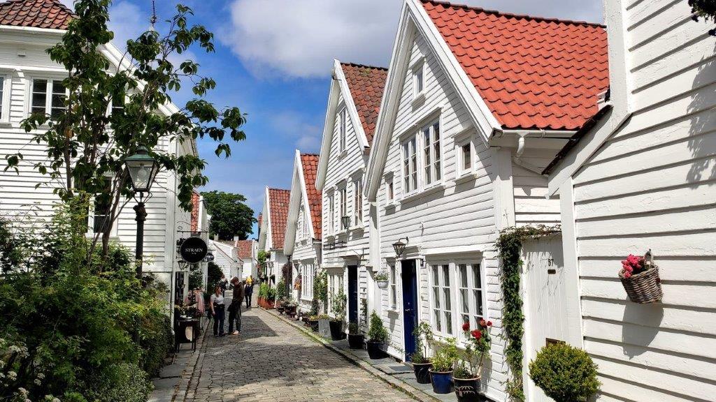 So, nun aber hinein in Gamle Stavanger! Über die Nedre Strandgate (Untere Strandstraße) zur Øvre Strandgate (Obere Strandstraße), um die sich 173 mehrheitlich weiße Holzhäuser scharten.