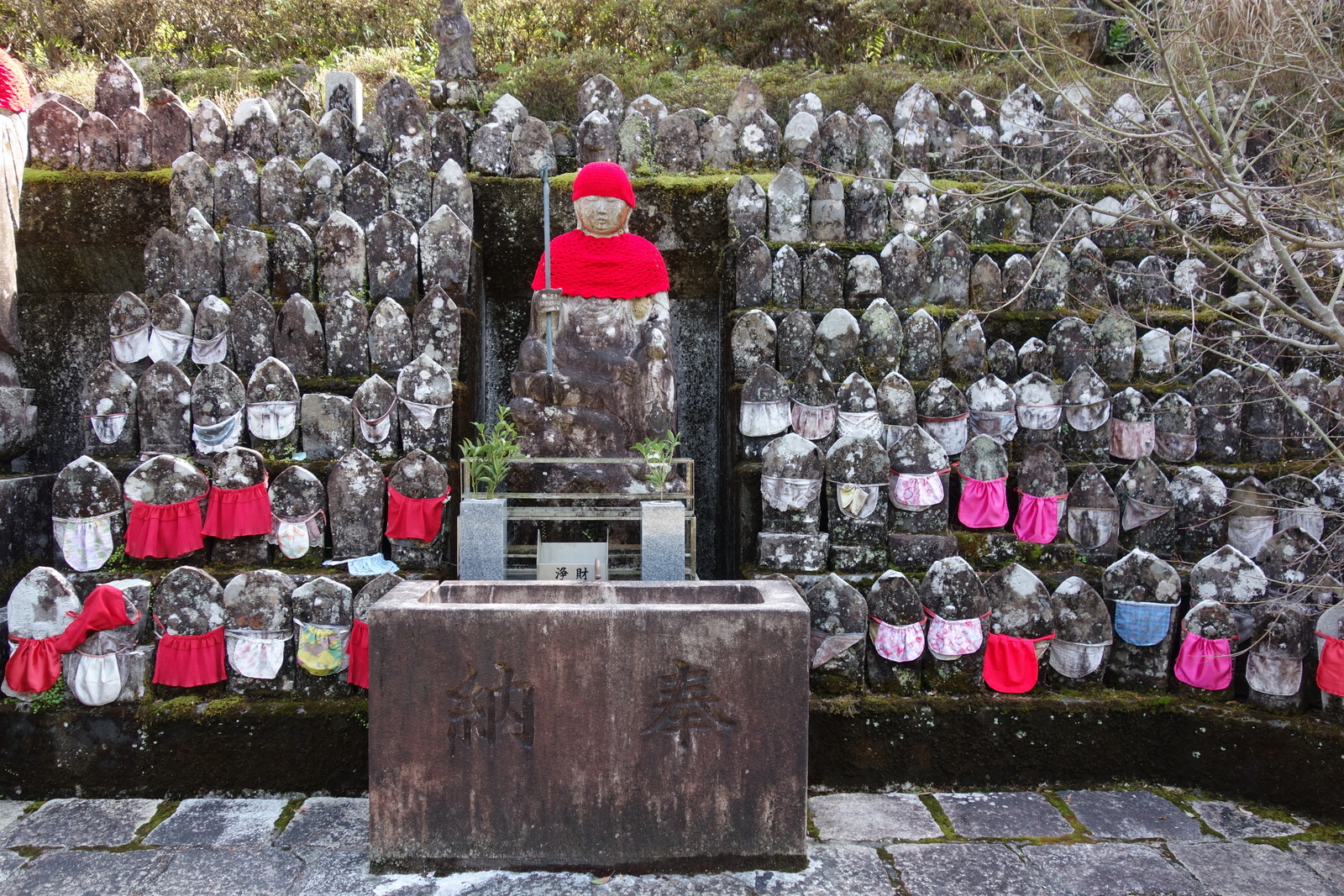 Seltsam, aber das dürfte wohl keinen Symbolwert haben, also etwa alles Verkehrstote sein. Genau wie die Grabsteine jetzt bei der Hochfahrt zum Chikurin-Ji Tempel. Die stehen an Abhängen im Wald, an Stellen wo man bei uns daheim allerhöchstens vielleicht zum Pilze suchen hinkommt. Werden jetzt auch nicht alles Leute sein, die genau dort den chinesischen Knollenblätterpilz gefunden und dann in Kochis Küche als Ragout verkauft oder gar selbst gegessen haben. Mal sehen, ob ich das Geheimnis noch lüften kann...