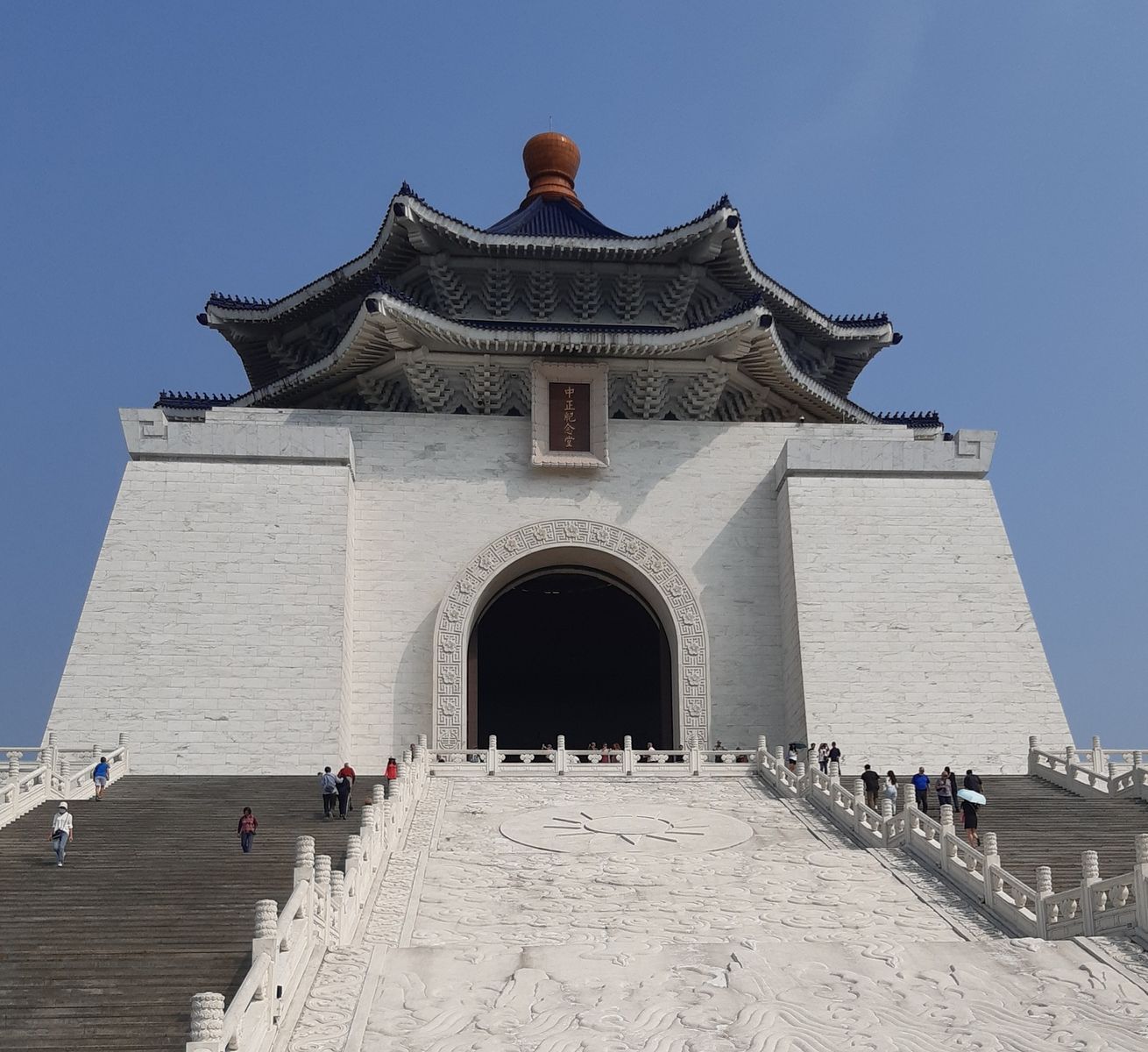 Hoffentlich nicht verkehrswidrig halten wir nun vor der Nationale Chiang Kai-shek-Gedächtnishalle.