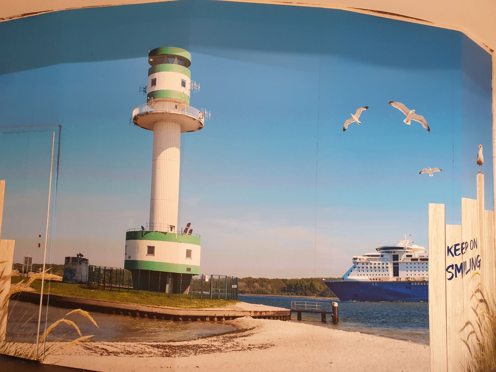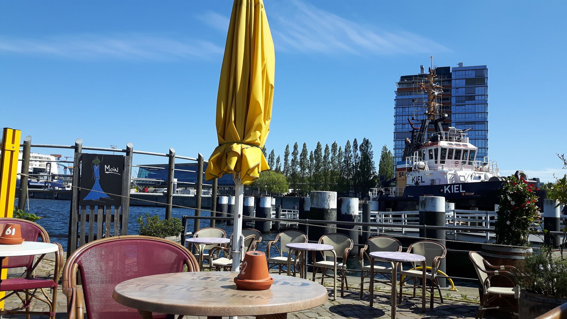 Irgendwie waren wir geschafft, Tochter hasst Zugfahren, schon als Kind und dann hatten die Züge auch noch Verspätungen. Zum Glück erwischte meine Schwester alle Anschlusszüge und traf wohlbehalten in Kiel ein. Es war das erste mal, dass sie alleine zu einem Abfahrtshafen fuhr – auch eine neue Erfahrung für sie.