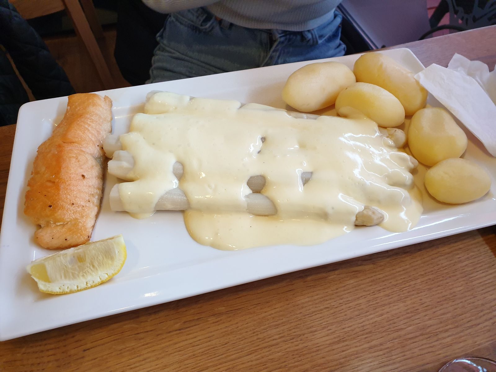 Meine Tochter freute sich, es ist ja Sparelzeit und es gab tatsächlich Fisch mit Spargel dazu.