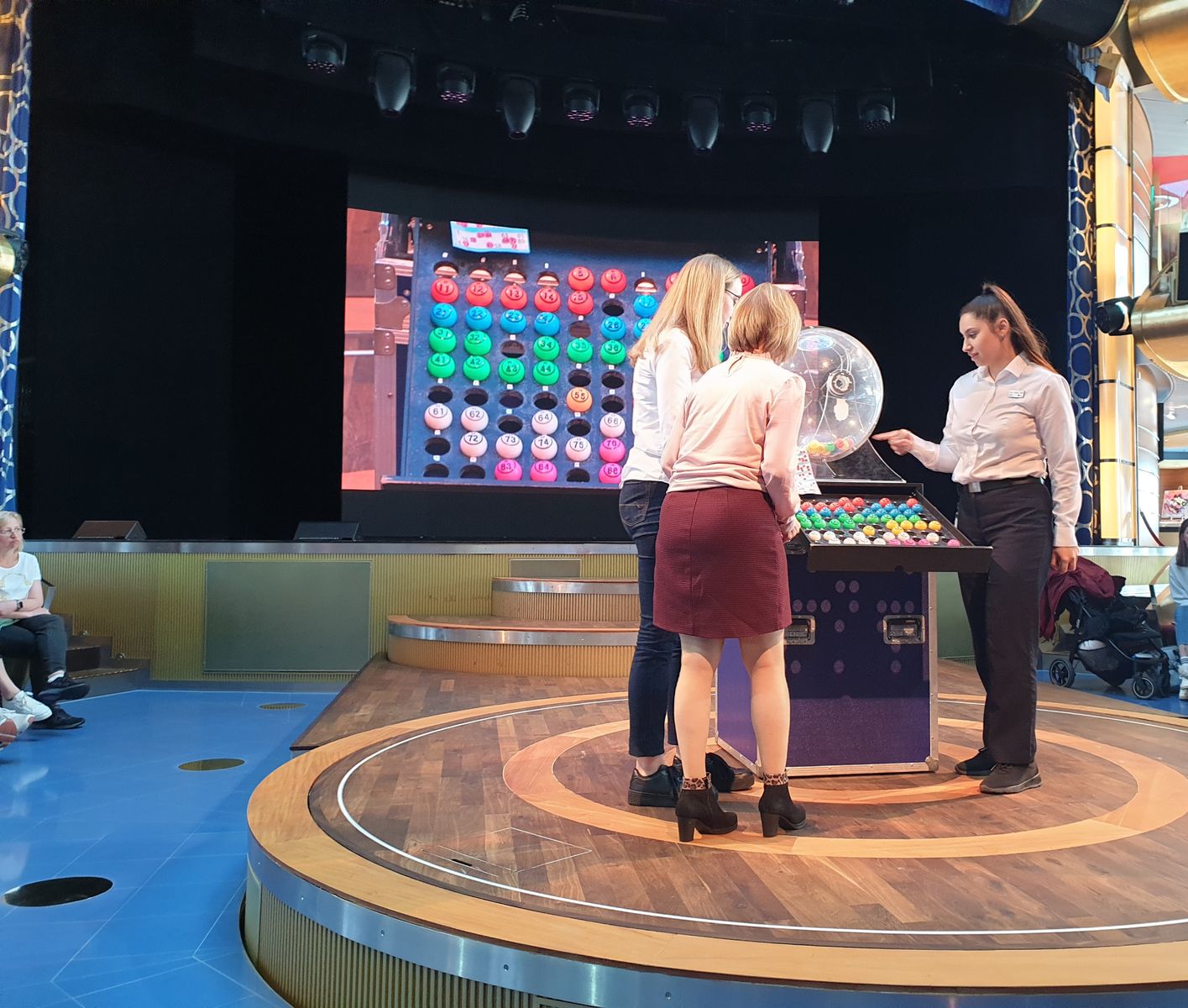 Wir suchen unsere Bingoscheine zusammen und ab geht es ins Theatrium. Voller Spannung warten wir auf die Ziehung der Zahlen ….