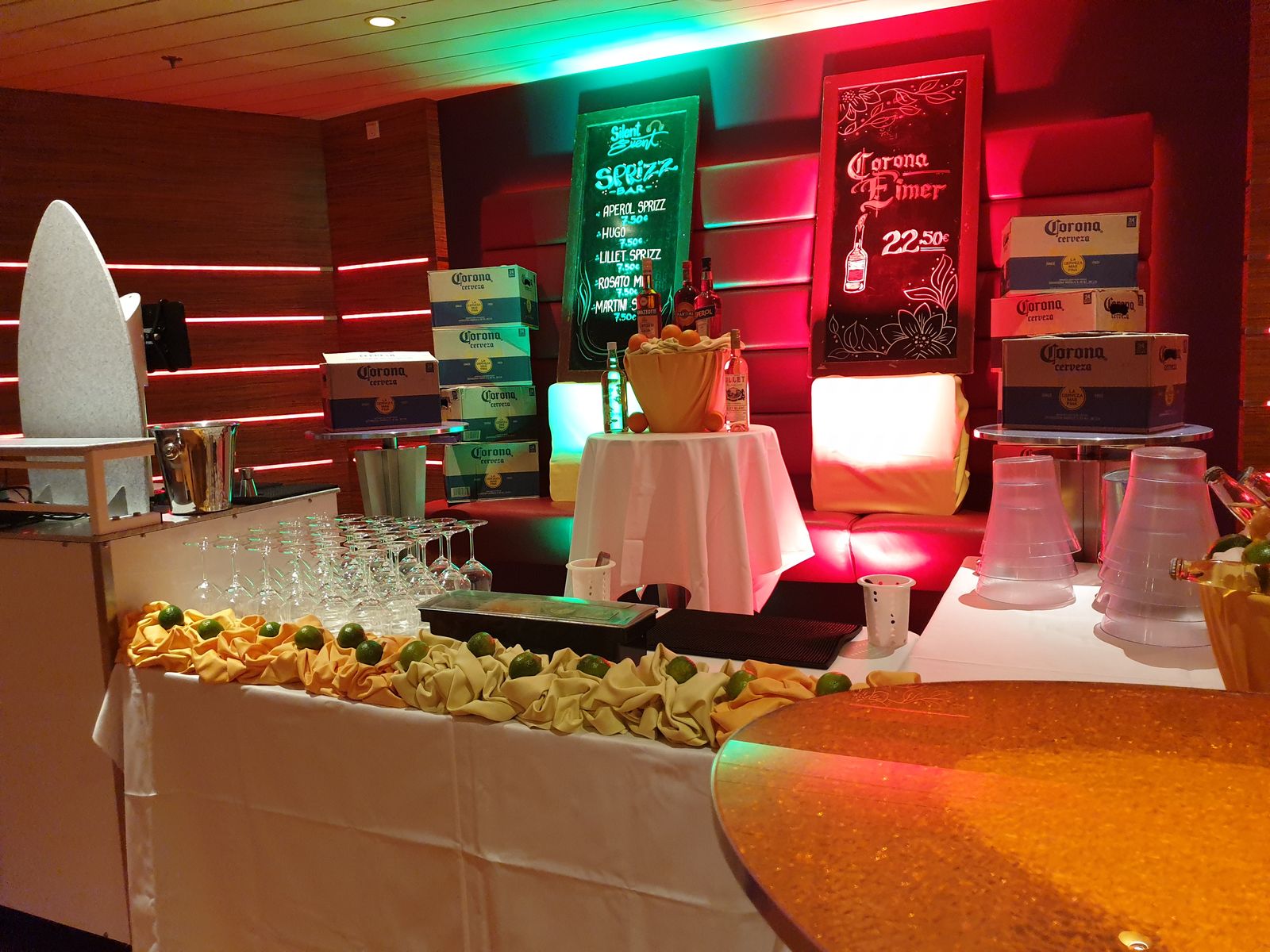 Einen Abendspaziergang an Land lassen wir ausfallen, denn heute Abend steht noch ein besonderes Event auf dem Programm, die Silent Party (diesmal in der AIDA Bar) und die darf man nicht verpassen.
