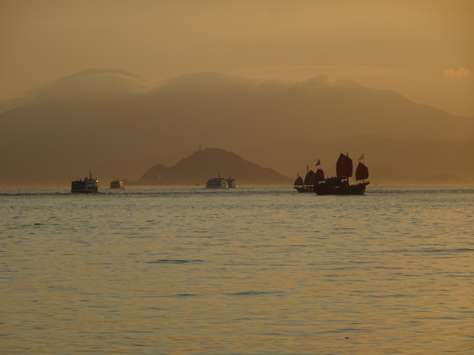 Die ehemalige „Britische Kronkolonie“ ist heute „Sonderverwaltungszone“ von China. Dieses Hongkong mit seinen drei Hauptgebieten, der Insel Hongkong, wo wir gerade sind, inklusive der sie umgebenden kleineren Inseln, gegenüber die Halbinsel Kowloon wo unser Schiff liegt. Und dann sind da noch die New Terretories, ein Festlandsgebiet, und auch die Insel Lantau mit diesem großen Buddha gehört dazu.