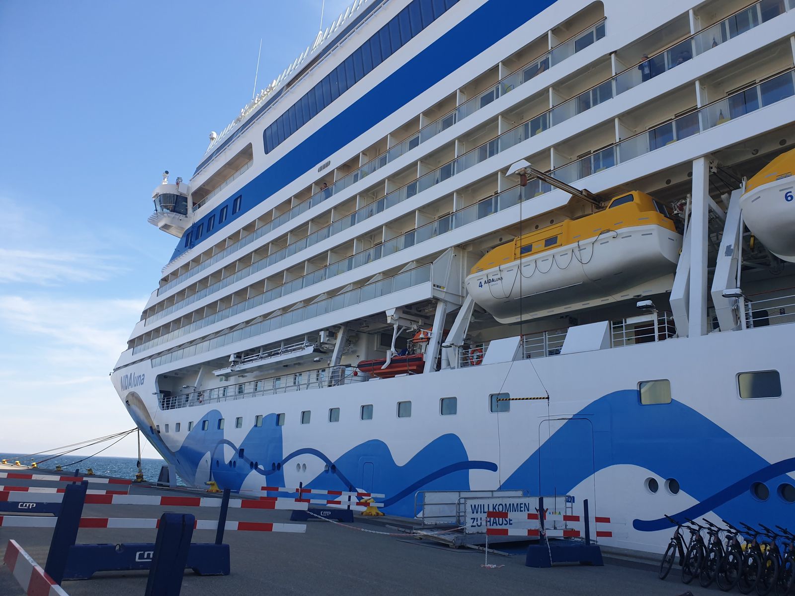 Kurz vor fünf heißt es, wir müssen zurück zum Bus, damit wir noch genügend Zeit zum schick machen haben und Koffer packen, denn morgen werden wir wieder in Kiel ankommen. Wir wollen ja nicht hetzen, denn das auslaufen um 19 Uhr werden wir noch mitnehmen, bevor wir essen gehen. Früher war es immer so, dass Mutti sich auf das Bänkchen vor dem Bett setzte und sie meinte: „ So Kinder, jetzt räumt mal schön und dann gibt es noch was ordentliches auf den Teller und hinterher noch Sekt. Also macht hin!“ Wir sind folgsam und alles klappt wie am Schnürchen.