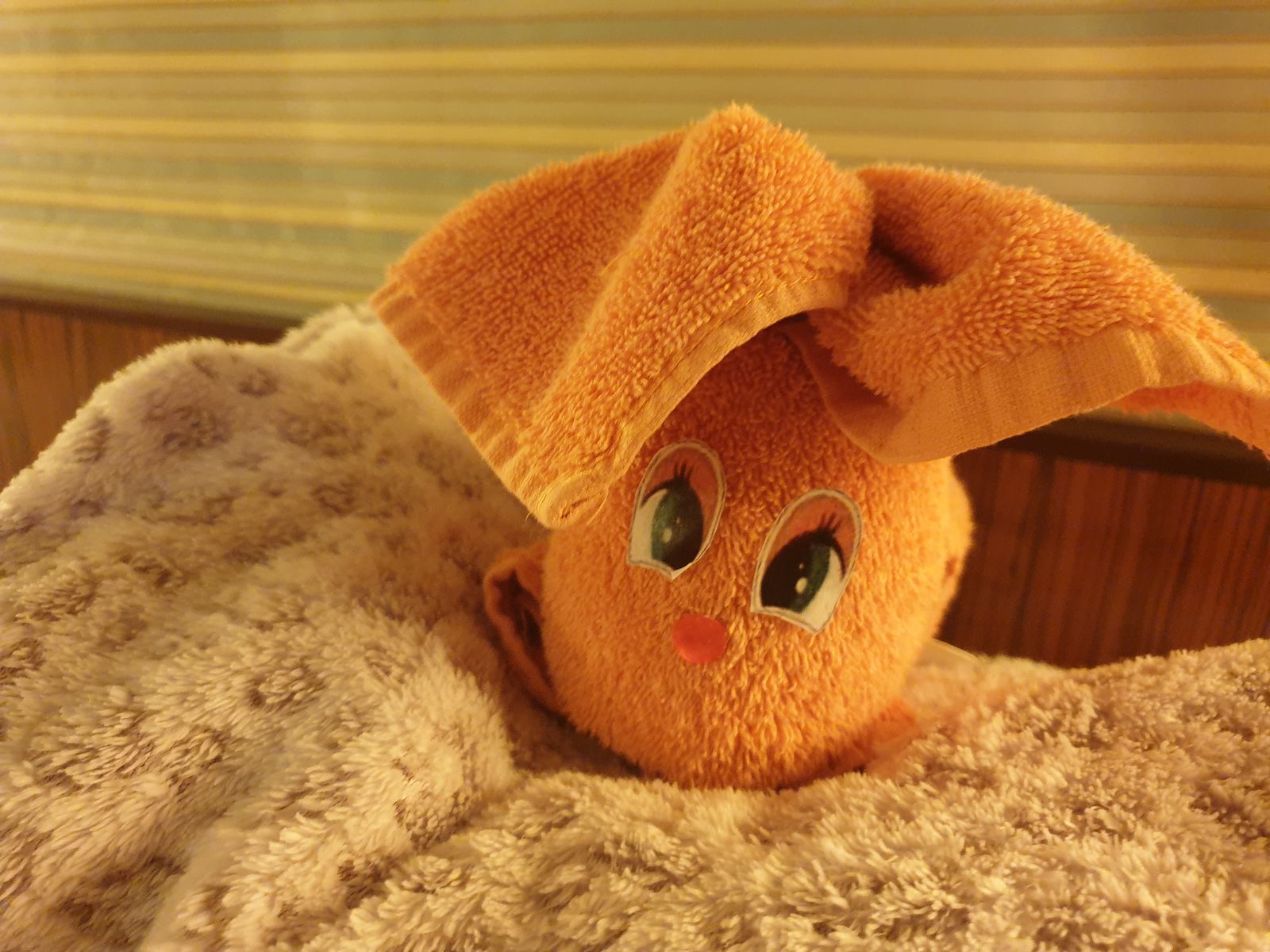Der Hase auf dem Bett schreckt irritiert hoch, als wir auf die Kabine kommen – es ist 2 Uhr! Wir packen noch das restliche Zeugs in die Koffer, die Mädels sind irgendwo. MyAIDAheute für morgen überfliege ich noch kurz und bleibe an einer Info hängen: „Wussten Sie, das …“ sich täglich 128 Köche um Ihr leibliches Wohl kümmern? … wir täglich 15.000 Teller für Sie spülen? … unsere Barkarte über 60 verschiedene Cocktails beinhaltet? … unsere Lebensmittel auf über 2000 Quadratmeter gelagert werden? 5.015 Minuten Entertainment. Wo waren Sie dabei? 250 Minuten Shows – 110 Minuten AIDA Prime time – 1.245 Minuten Sportaktivitäten mit Ihren Gastgebern – 1.080 Minuten Live-Musik mit Ihren Musikern – 2.340 Minuten Betreuung unserer kleinen Gäste … Interessant zu lesen und jetzt machen wir das Licht aus – müdeeeeee. Die Nacht wird kurz, morgen kommen wir in Kiel an.
