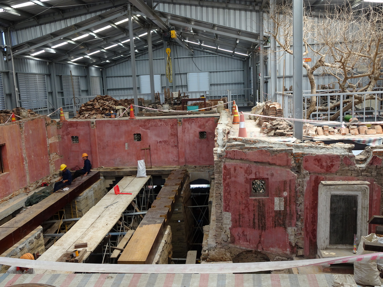 Aber die Ausflugsbeschreibung hat trotzdem nicht gelogen. „Überdacht“ ist sie ja, aber eben mit Gerüst, Blechplatten und Plane.