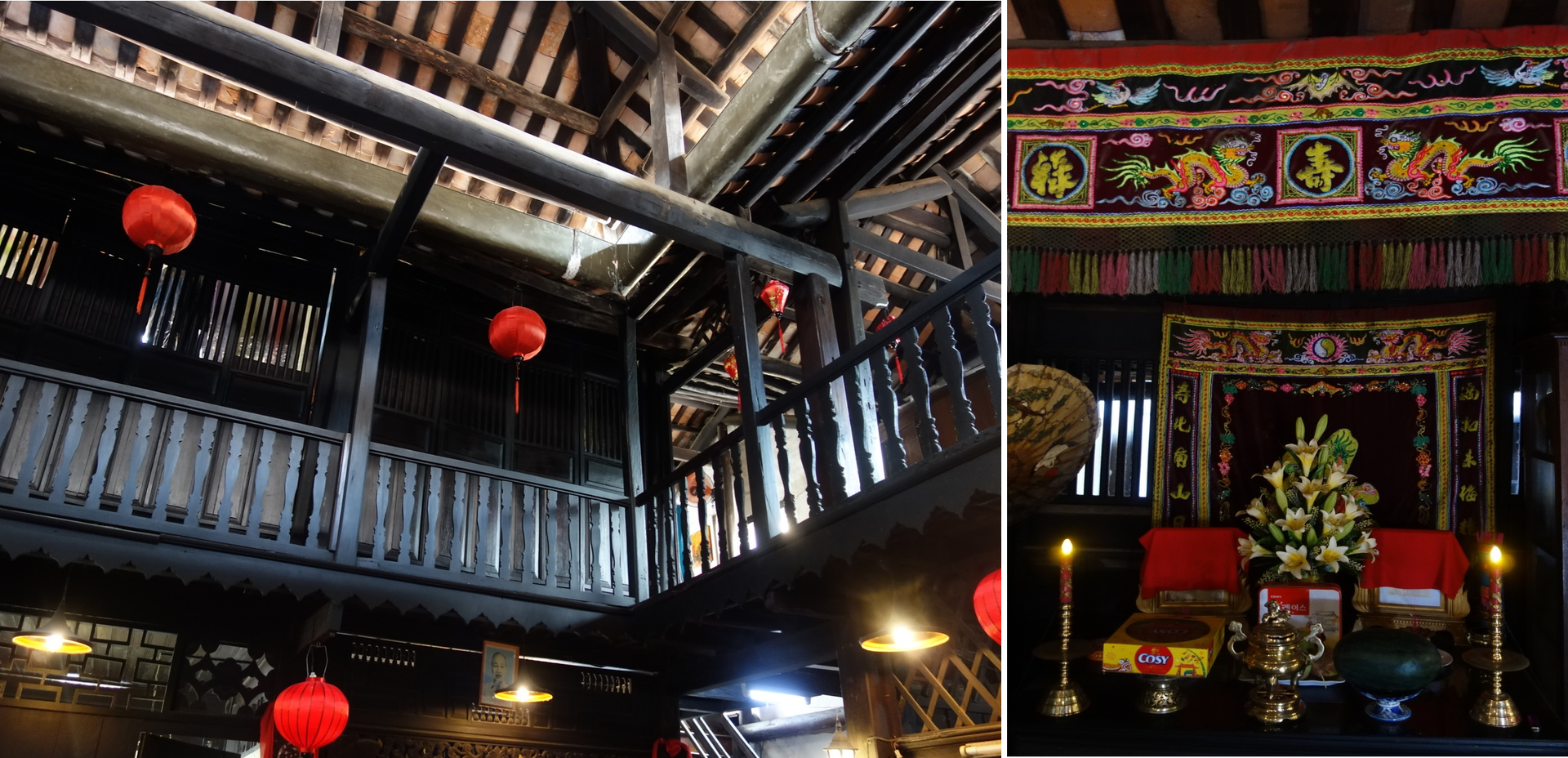 Und dann geht es erstmal wieder da hin, wo nun wirklich keine „Knatterbüchsen“ rein können, diesmal in die Nr. 123, dem „Duc An House“. Auch wieder so ein Generationen-Haus und außerdem war da auch mal ein Apotheker drin. Einmal durch, das Übliche halt, ganz nett hier.