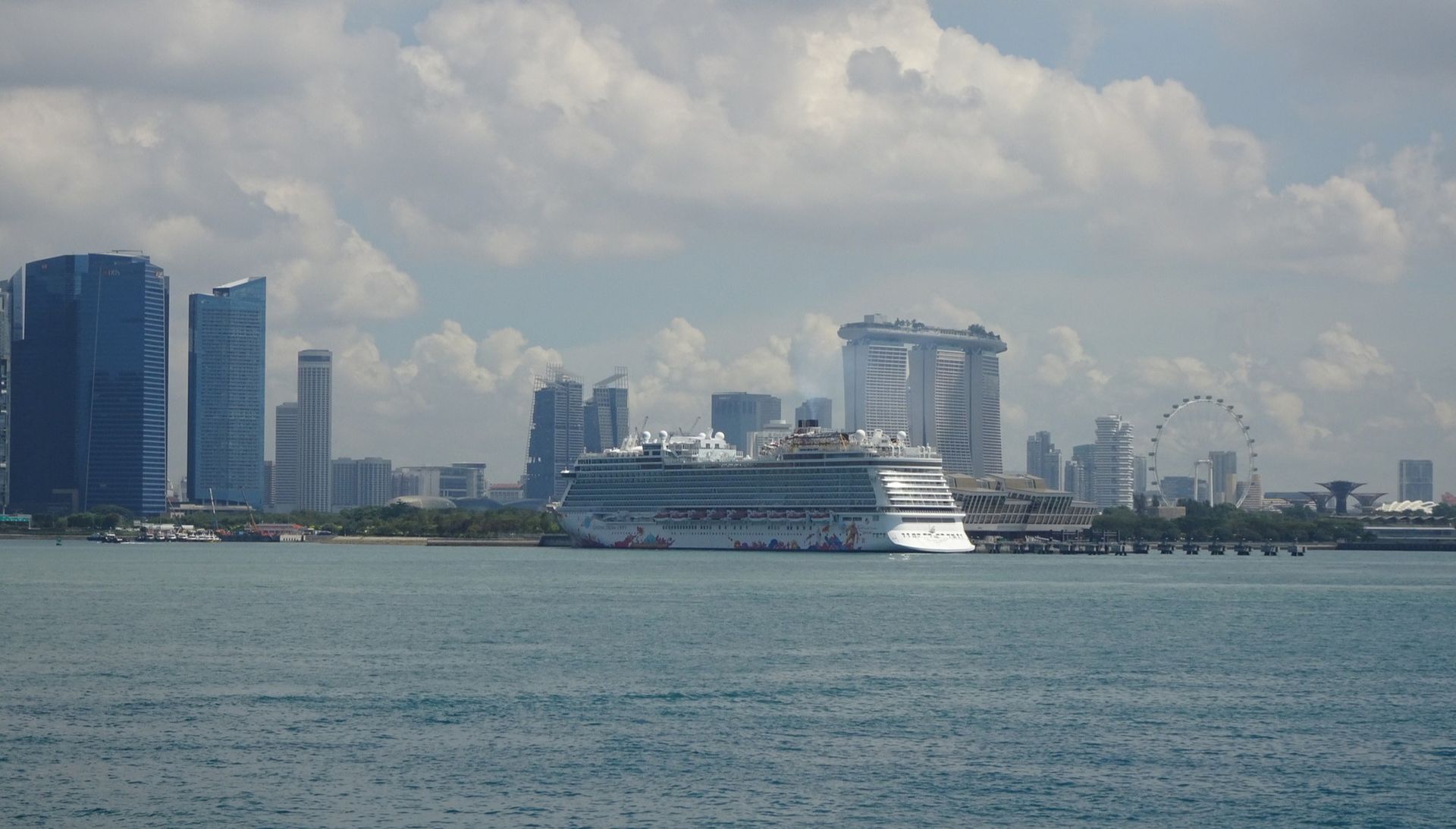 mit 165 m zweitgrößtes Riesenrad der Welt, der Singapore Flyer, welchen man schon beim Einlaufen sieht, ist übrigens wieder mal defekt, wie damals.