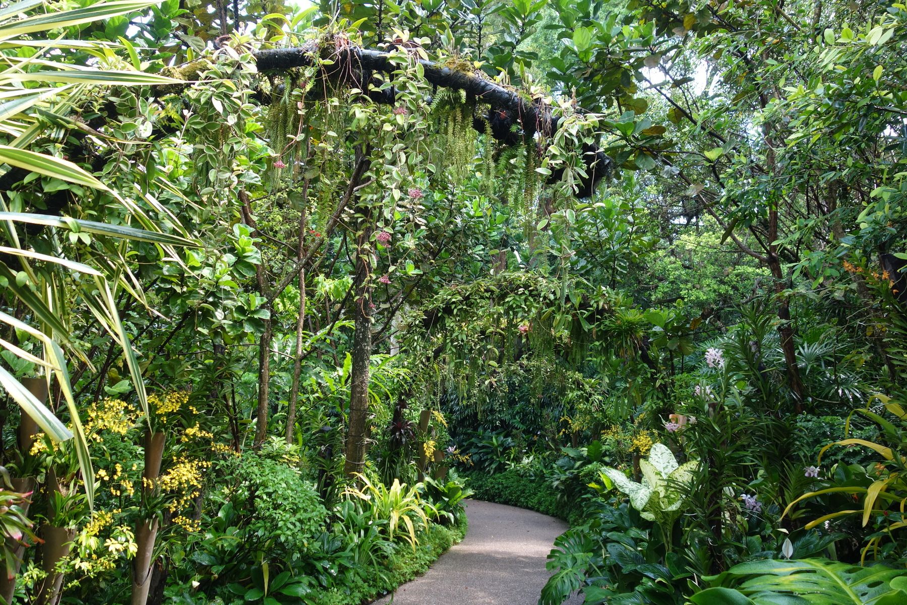 Erst mal direkt zum Singapore Botanic Garden, den dieser Sir Thomas Stamford Raffles bereits vor 200 Jahren gegründet hat. Die mehr als eine halbe Millionen Pflanzen schauen wir uns zwar nicht an, obwohl dies kostenlos wäre, sondern die kostenpflichtige Orchideensammlung