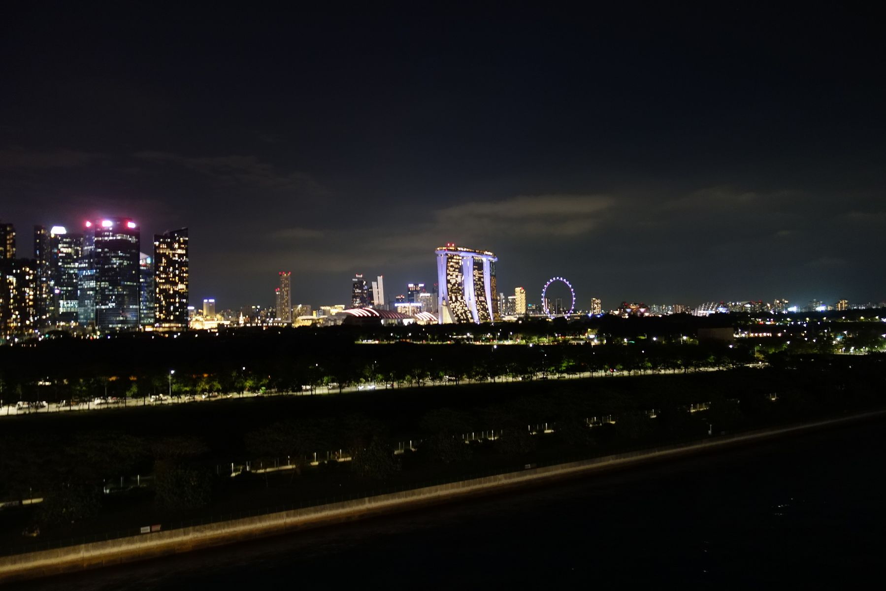 Doch irgendwie ist die Luft raus. Und diese Luft trägt ohnehin Entscheidendes dazu bei. Es ist drückend feuchtschwül und schon gestern Abend zeichnete es sich ab, -wir bleiben einfach an Bord. Schon die letzten Tage waren merklich "kleidungsintensiv". Noch den halben Tag auf eigene Faust durch die Hitze, dabei die Teddys auf dem Buckel. Wer will denn solche „Stinkbolzen“ im Flieger mitnehmen? Ist doch peinlich. Da geht es jetzt also hoch auf das nahezu menschenleere „Nackedeideck“, man will ja keine Klamotten mehr einsauen. Aussicht auf Marina Bay,