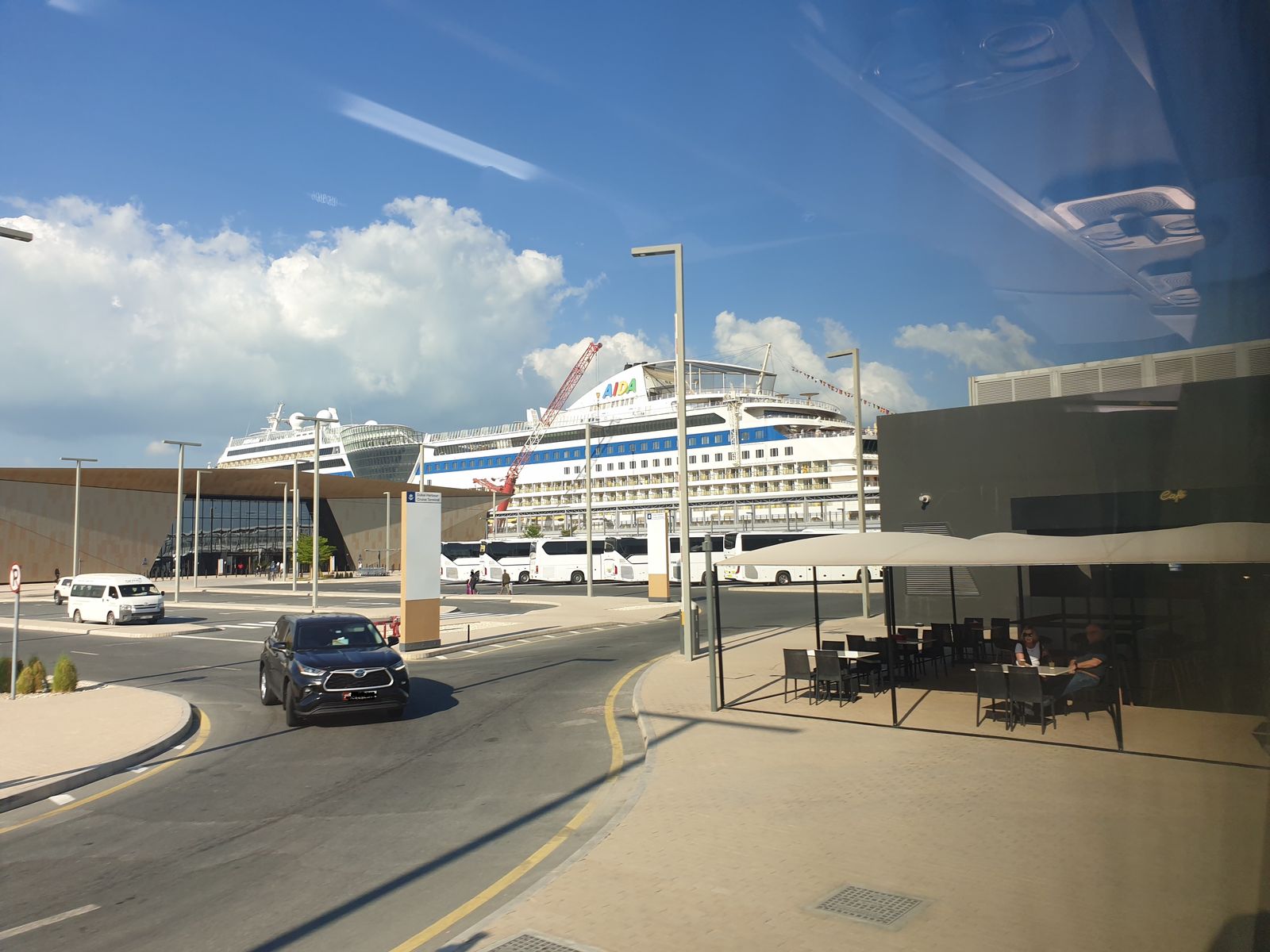 Im Gate sitzen bereits ab 20 Uhr viele AIDAreisende, denn es ist ein Charterflug. Plötzlich ertönt schon etwas früh vor, dass die Busse stehen bereit. Finde ich merkwürdig, aber egal. Der Bus bringt uns zum Flieger und dann sitzen wir und sitzen wir, ein ganze Weile, bis wir endlich in die Maschine dürfen. „Das fängt ja schon wieder gut an. Mal gucken, was wir heute noch erleben“ höre ich meinen Mann sagen. Seiner Mine nach, schaut er skeptisch. Und so kommt es auch. Das Signal ertönt, wir sollen uns anschnallen – aber die Maschine steht wie fest betoniert auf dem Flugfeld. Dann meldet sich der Kapitän, es gäbe ein Problem. Die Maschine sei zu schwer, sie könne nicht starten. Ich mit meiner Flugangst bekomme schon feuchte Hände und mein Mann versucht mich zu beruhigen. Dann kommt die Information, der Flieger hat zu viel Sprit getankt und das anvisierte Gewicht der Zuladung an Gepäck war anders, wie vorgesehen. Offiziell hieß es, 20 Kilo pro Koffer, dann kam die Info von Aida 25 Kilo und zack, stimmte die Rechnung nicht mehr. Sprit ablassen ging nicht, einen Teil der Koffer wieder entladen ging auch nicht. Da war guter Rat teuer. Kurzum, es wurde Brauchwasser abgelassen. Ich grinse meinen Mann an und flüstere leise „hoffentlich ist noch so viel Wasser im Tank, dass die Toiletten funktionieren!“ Er verbeißt sich ein lachen.