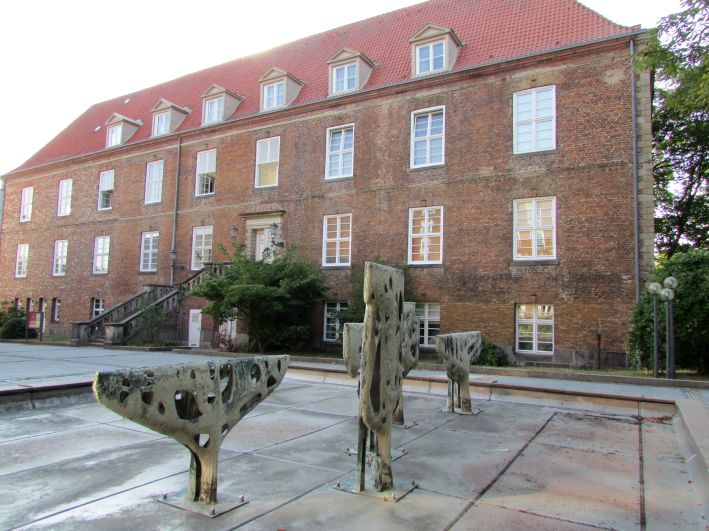Im Innenhof des Kieler Schlosses gibt´s noch mehr Kunst - erinnert mich irgendwie an "Walflossen im Trockendock" (wahrscheinlich ist das Wasser schon verdunstet) und ist nicht so ganz mein Geschmack. Hätte mich persönlich jemand vor die Wahl gestellt: "Ist das Kunst oder kann das weg?" - Ich glaube, ich hätte mich ziemlich spontan für letzteres entschieden.