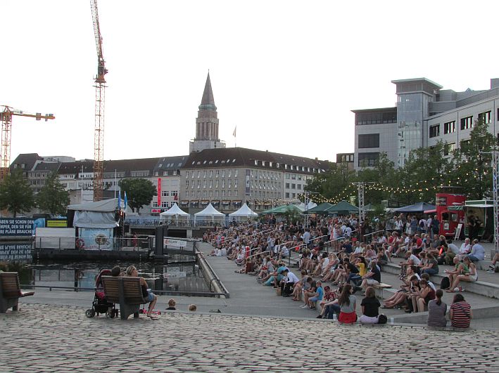 Doch nun nochmal in Richtung Bootshafen, der eigentlich gar kein richtiger Hafen ist, sondern eine Art spitz zulaufendes viereckiges künstlich angelegtes Wasserbecken mit Open Air Bühne, direkt an der Kaistraße und unweit des Schwedenkais gelegen.