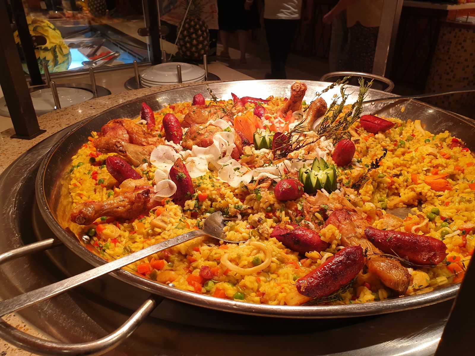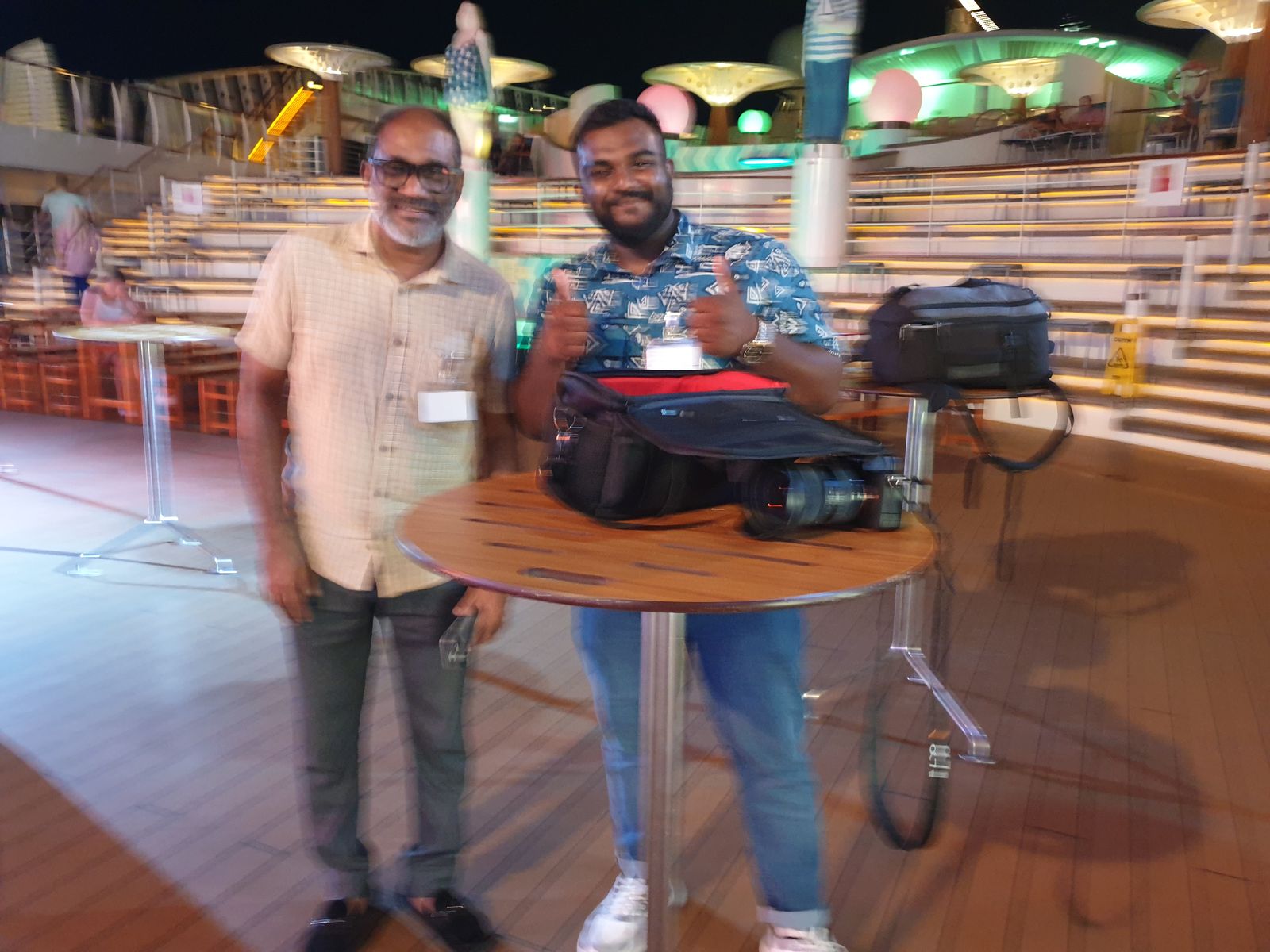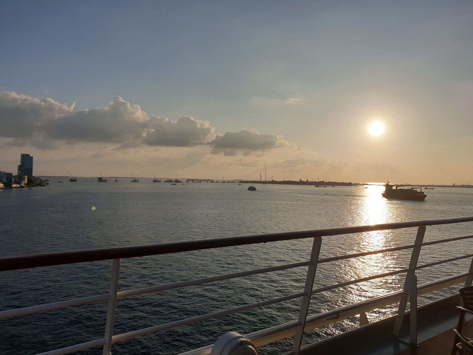 Dazu gibt es eine kleine Geschichte. Am Vormittag sah ich 4 Herren über das Pooldeck laufen, sie schauten sich suchend um und ich fragte, ob ich ihnen helfen könne. Es kommt eine Konversation in Gang und ich frage, ob sie eine Abordnung aus Sri Lanka seien, die jetzt schon an Bord gekommen sind, wegen der Einreiseformalitäten. Nein, sie seien aus Malé und einer von ihnen fragt mich, ob ich schon mal dort unterwegs war. Ich nicke und berichte ihnen von meinem damaligen Eindruck und wie schön ich es finde, dass sich im Laufe der Zeit in der Hauptstadt viel zum positiven hin verändert hat. Die haben mich angestrahlt und gefragt, ob ich bereit wäre für ein Interview. Da sage ich einfach mal ja – auch wenn es in englischer Sprache erfolgt. Wir treffen uns etwas später auf dem Pooldeck, große Kamera auf mich gerichtet, Film ab – und ich habe es wohl ganz gut hinbekommen. Die Herren bedanken sich per Handschlag. Einer von ihnen möchte gerne noch ein weiteres Interview mit seinem Handy aufnehmen und er fragt nach einer schönen Umgebung. Da wir vor dem Rossini stehen, frage ich die Crew dort, ob wir kurz reinkommen können. Kein Problem und der Herr findet das Restaurant total schön. Er richtet sein Handy auf mich und ich gebe das wieder, was ich vorher erzählt habe. An seiner Mimik sehe ich, er ist stolz auf Malé.