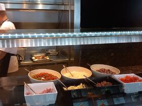 Was man meiner Meinung nicht in einem Selbstbedienungsrestaurant essen kann ist gegrilltes, das ist immer eine 50/50 Chance ob es genießbar ist oder einer Schuhsohle ähnlich, je nachdem wie lange es schon im Behälter auf die Abnahme wartet, das ist hier nicht anders. Alles im allen kann man im Bistro passabel essen, in den Restaurants ist es besser.