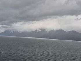 Ich stehe wieder um 6 Uhr auf um noch einige Gletscher zu sehen. Der Kapitän dreht das Schiff auch einmal am Stand um eine gute Sicht von allen Seiten zu gewährleisten. Die Magellanstraße ist hier sehr breit, wird links und rechts von Gletschern und Bergen gesäumt. Der Vorteil ist, dass das Meer sehr ruhig ist.