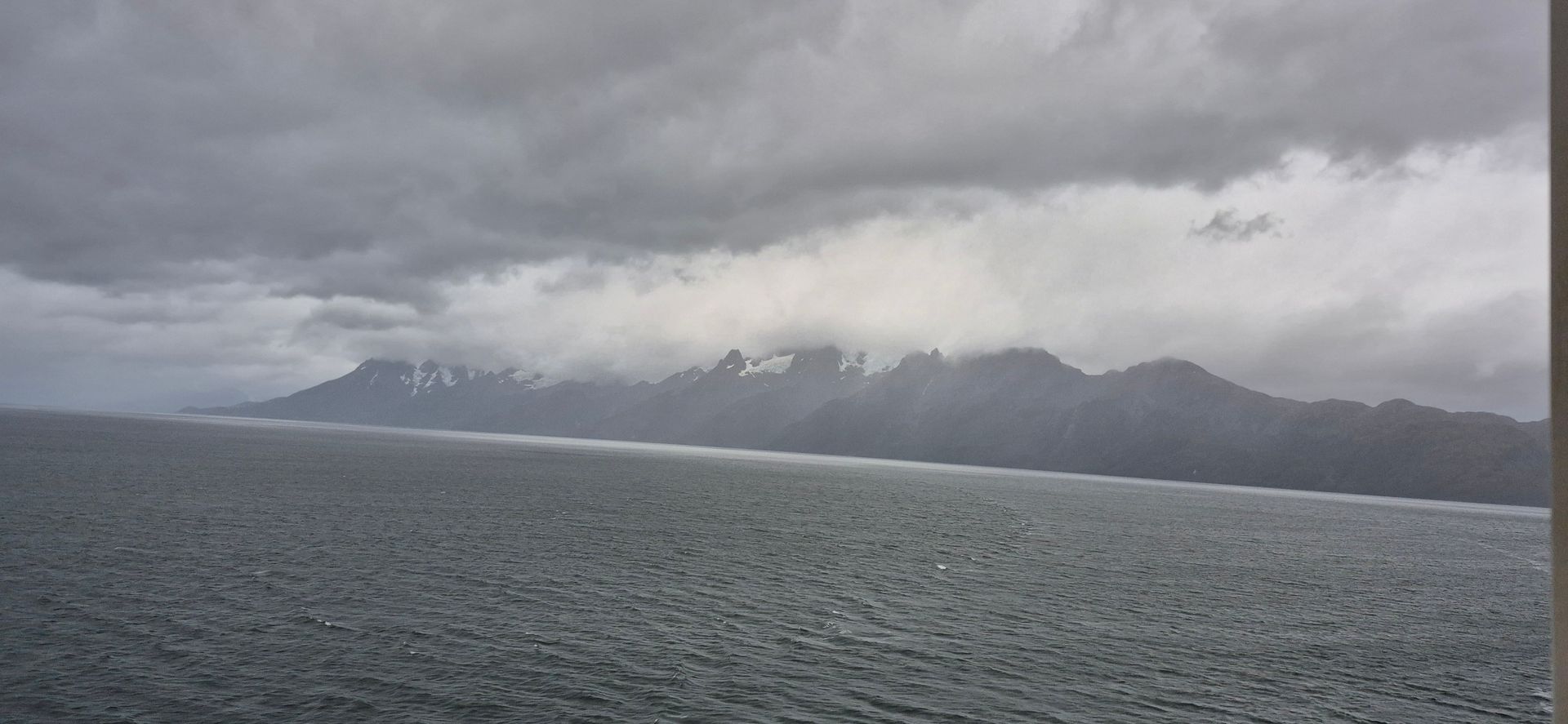 Ich stehe wieder um 6 Uhr auf um noch einige Gletscher zu sehen. Der Kapitän dreht das Schiff auch einmal am Stand um eine gute Sicht von allen Seiten zu gewährleisten. Die Magellanstraße ist hier sehr breit, wird links und rechts von Gletschern und Bergen gesäumt. Der Vorteil ist, dass das Meer sehr ruhig ist.