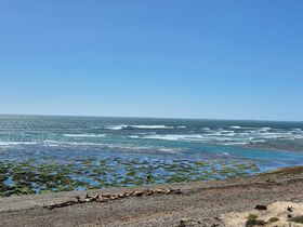 Mangels alternativen buchen wir bei einem örtlichen Unternehmen am Hafenausgang eine Tagestour zur Halbinsel Valdés (150€/P). Die Tour führt uns rund um die Halbinsel mit den Stränden, an denen sich der antlantische Ozean bricht. Optisch ein Highlight. Der Guide spricht sehr gut englisch. Wir sehen verschieden Arten an Robben, einige Pinguine und andere Tieren. Ansonsten ist es ein karges Land in dem nur einige wenige Tiere überleben können, Es gibt kein Trinkwasser und es regnet kaum. Es gibt aber eine riesige Schafzucht, Schafe kommen mit dieser Umgebung zurecht, es wird aber in erster Linie die Wolle verkauft. Insgesamt 4 Stunden Fahrt auf einer Schotterpiste bei öder ewig gleichen Ausblick und 4 Stunden Aufenthalt bei diversen Aussichtspunkten waren jetzt nicht das was wir uns erwartet haben. Warum diese Halbinsel als besonders Sehenswert bezeichnet wird entschließt uns nicht. Auch hätten wir von uns aus Puerto Madryn nicht anlegen müssen.