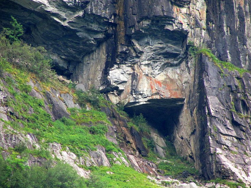 Dennoch macht mich diese Kulisse nachdenklich, denn sie wirkt auch irgendwie bedrohlich, was nicht in erster Linie an den sich über unserem Boot aufbauenden drohenden Wolken liegt. Wir in unserem kleinen Bötchen, nur wenige hundert Meter von wiederum mehrere hunderte Meter hohen steilen, teils fast senkrecht ins Wasser abfallenden Felswänden. Wir - die Menschen, die denken, immer und überall über den Dingen zu stehen - sind hier bedeutungslos. Völlig bedeutungslos. Denn die Natur hat ihre eigenen Pläne, wie die Vergangenheit gerade in dieser Region bereits zweimal auf dramatische Weise gezeigt hat.