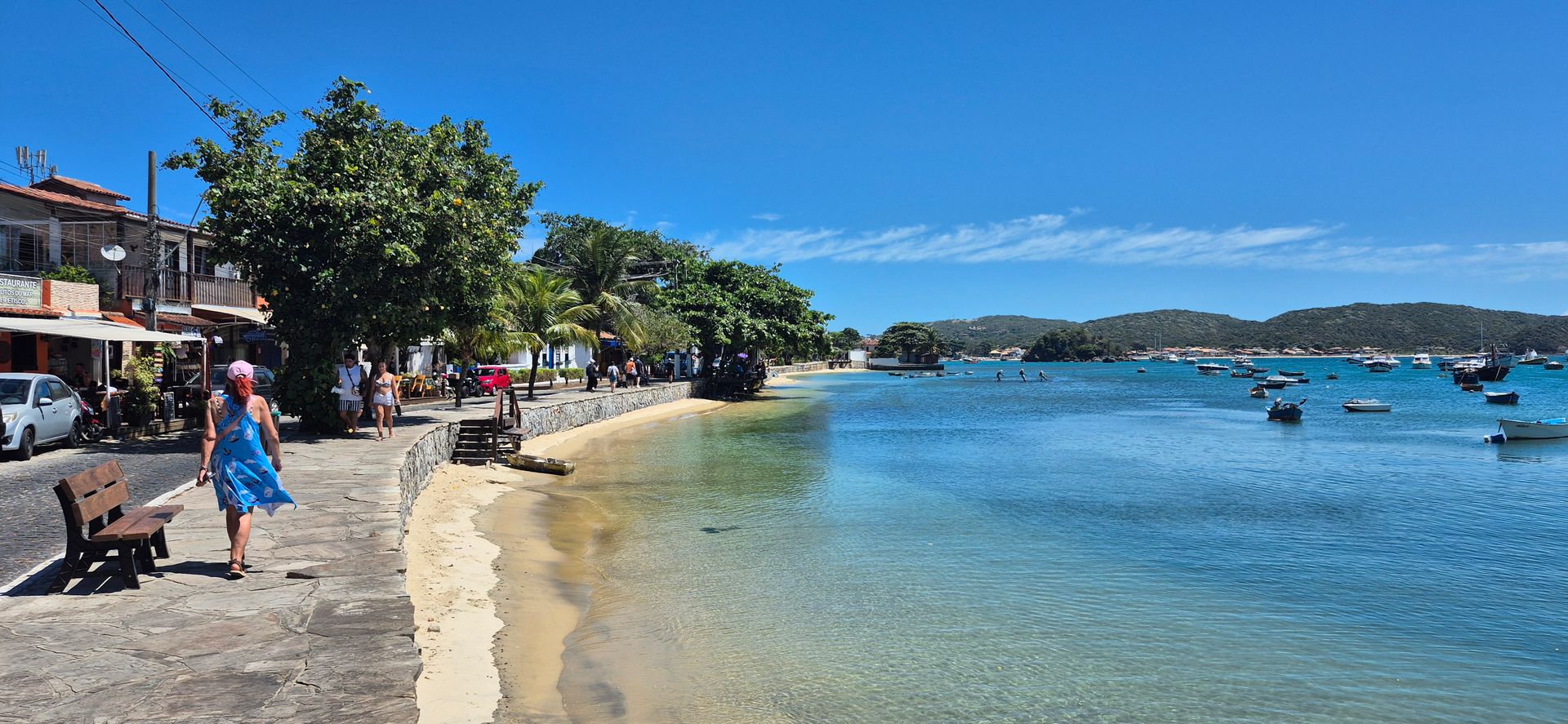 Außentemperatur 32°, Kabine👍23°, heute steht der Kapitän richtig zur Sonne! Wir tendern wieder einmal. Da wir sogar etwas früher ankommen als geplant beginnt auch unser Bade Ausflug früher, super dass der Veranstalter so flexibel ist. Mit Caipirinha am Morgen, vertreibt Kummer und Sorgen, wird der Ausflug mit 3 Badestops ganz gemütlich. Bùzios war einmal ein bekannter Badeort den Brigit Bardot vor einigen Jahrzehnten bekannt gemacht hat. Sie lebte 4 Monate hier und zog den Jetset an. Heute besteht der Ort nur mehr aus vielen Lokalen und Shops. An einer schönen Strandpromenade kann man lange spazieren gehen,wenn man das bei den Temperaturen möchte.