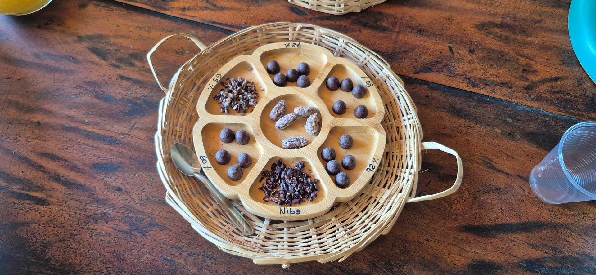 Es gibt wieder einmal einen Shuttlebus, weil man im Hafengelände nicht zu Fuß gehen darf. Es sind aber 4 Busse eingesetzt, man muß daher nicht lange warten. Wir nehmen uns ein Taxi zu einer Kakao Farm. Eine sehr schöne Vegetation erwartet uns beim Weg durch die Plantage und natürlich gibt es dann auch die Schokolade zum Verkosten und natürlich zum Kaufen. Die ist aber wirklich sehr gut, selbst die mit 92% ist nicht so extrem bitter wie bei uns.. Danach gibt es noch eine Fahrt zu der Kathedrale, viel mehr gibt es auch im Zentrum nicht. Da Sonntag ist, ist auch fast alles geschlossen. Die Fahrt zum Strand fällt leider aus, weil es einen Stau gibt, statt dessen fährt uns der Fahrer zu einem netten Lokal mit einer schöne Aussicht auf den Fluss.