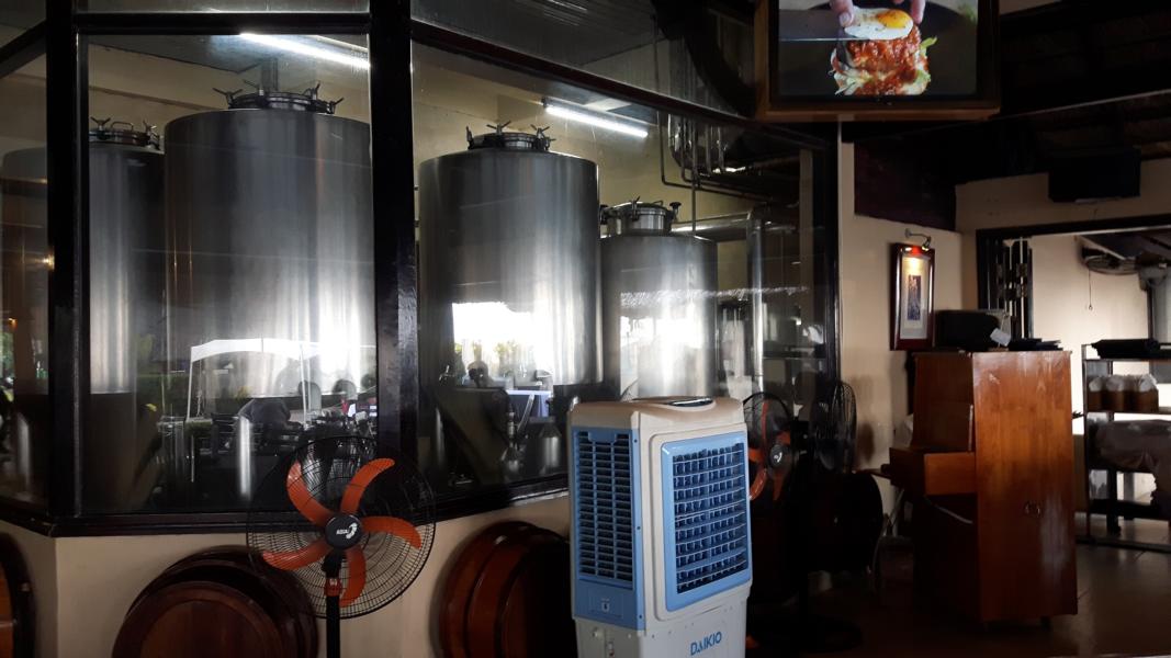 Das Lokal, das unser privater Touranbieter herausgesucht hat, bietet eine Besonderheit: es gibt selbstgebrautes Bier im Ausschank. Ein wenig erinnert es mich an das Brauhaus auf den AIDAschiffen oder? Auch dort kann man vom Tisch auf die glänzenden Tanks schauen.