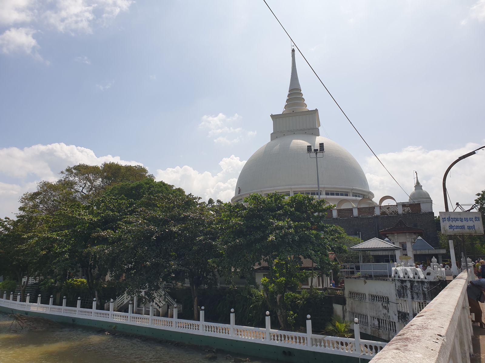 Wir haben den Beirasee erreicht und vor uns liegt der Gangaramaya-Tempel. Rasch ziehen wir die Schuhe aus und barfuß betreten wir das Gelände. Welch eine Aura umgibt die Gebäude dort. Auf dem Wasser glänzen die Spiegelbilder - Goldene Buddhas, sitzend oder stehend, wohin man schaut.