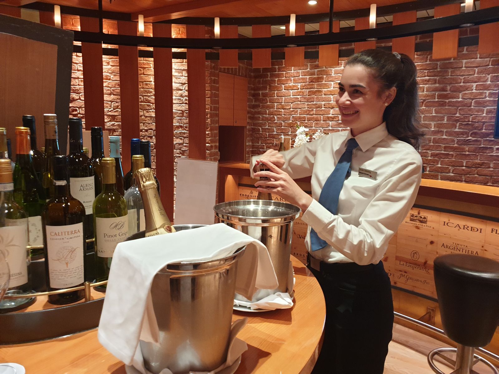 Vor dem Schiff herrscht ein Gewusel, für uns heißt es aber, nicht stehen bleiben. Jetzt rasch auf die Kabine, duschen, umziehen und um 18.15 Uhr treffen wir die anderen Teilnehmer der „Tour de Gourmet“ in der Vinothek.