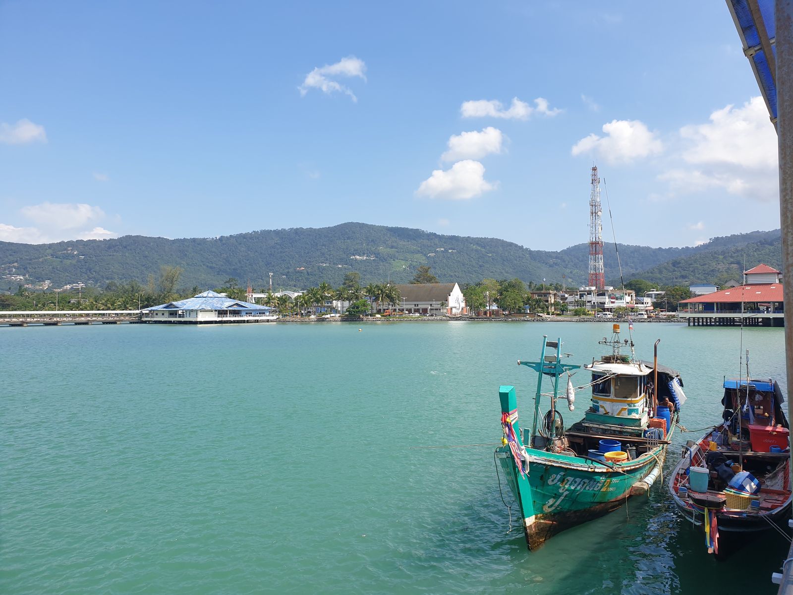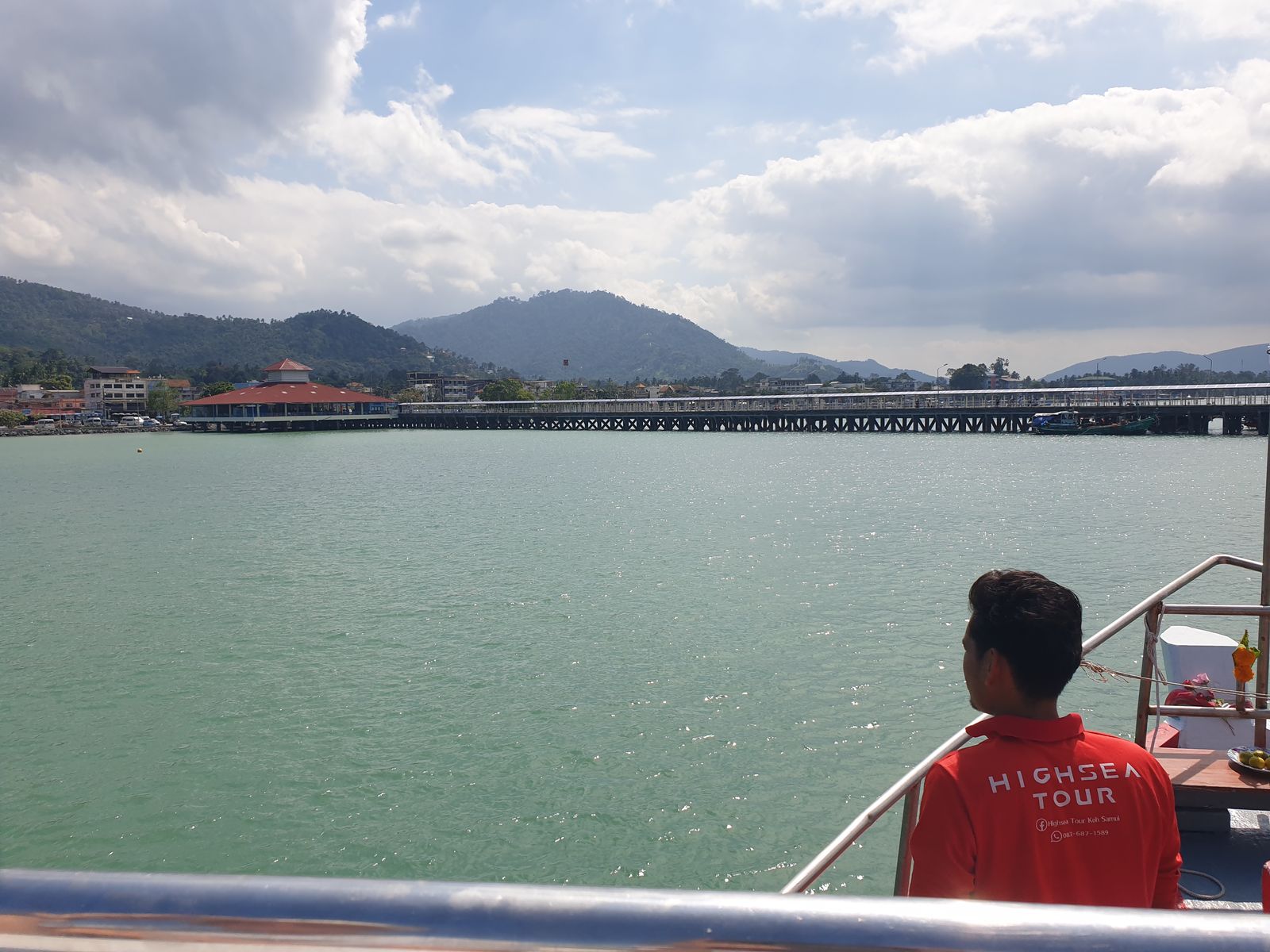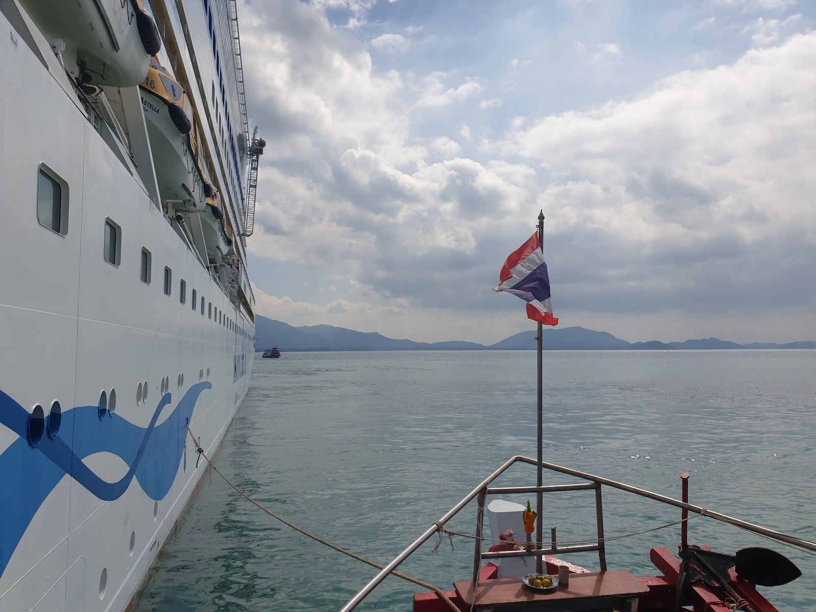 Gegen 11 Uhr ist der große Ansturm auf Deck 3 abgeflaut und wir können ganz gemächlich rüber fahren. Wir mögen die heimischen Tenderboote von Koh Samui. Jedes mal wenn ich eins besteige, erinnere ich mich an die Überfahrt mit ein paar Crewmitgliedern vor einiger Zeit. Urplötzlich prasselte der Regen nieder, wir kauerten uns zusammen in einem trockenen Eckchen und es schaukelte ganz ordentlich. Es ist alles gut gegangen damals.