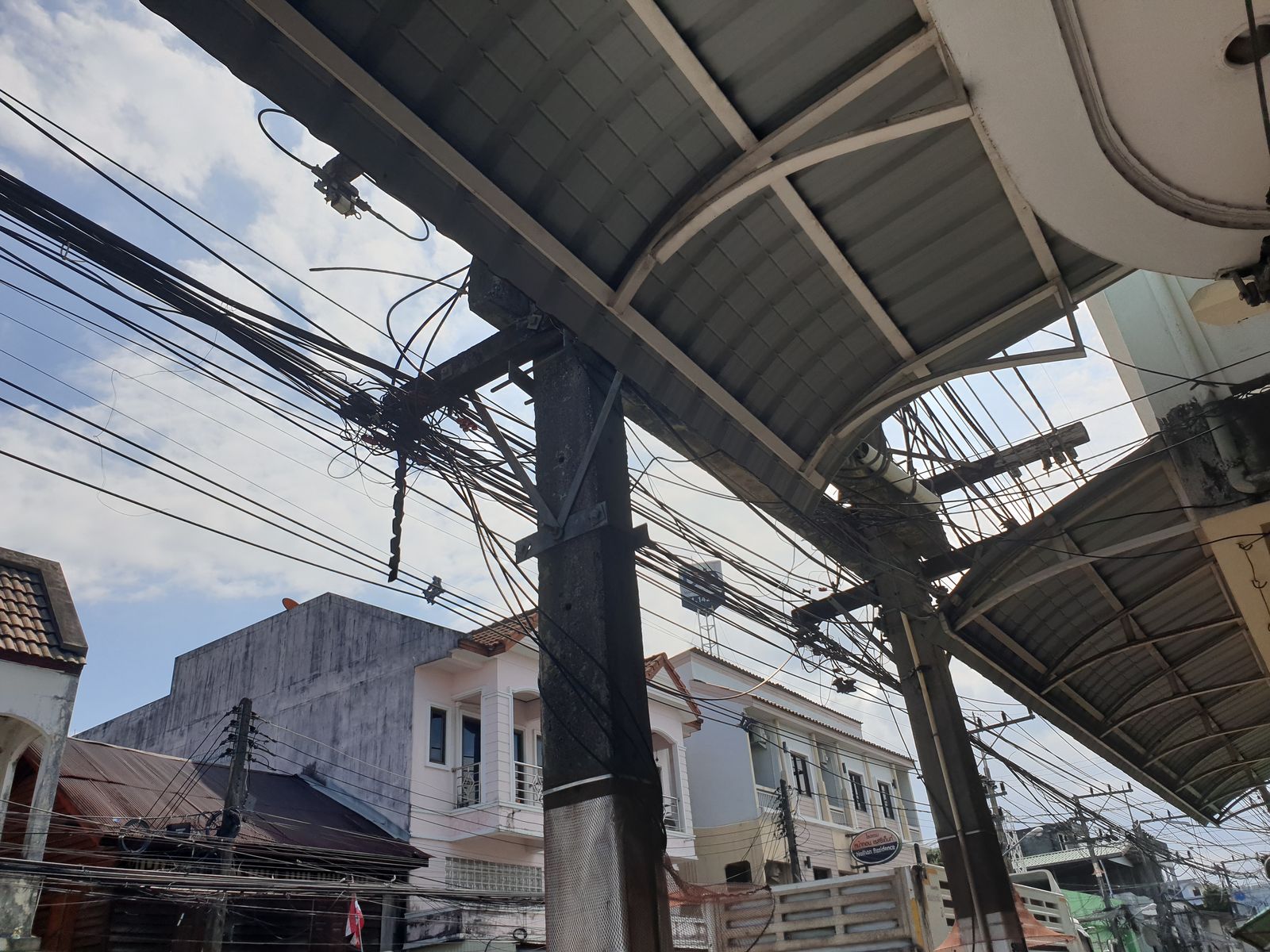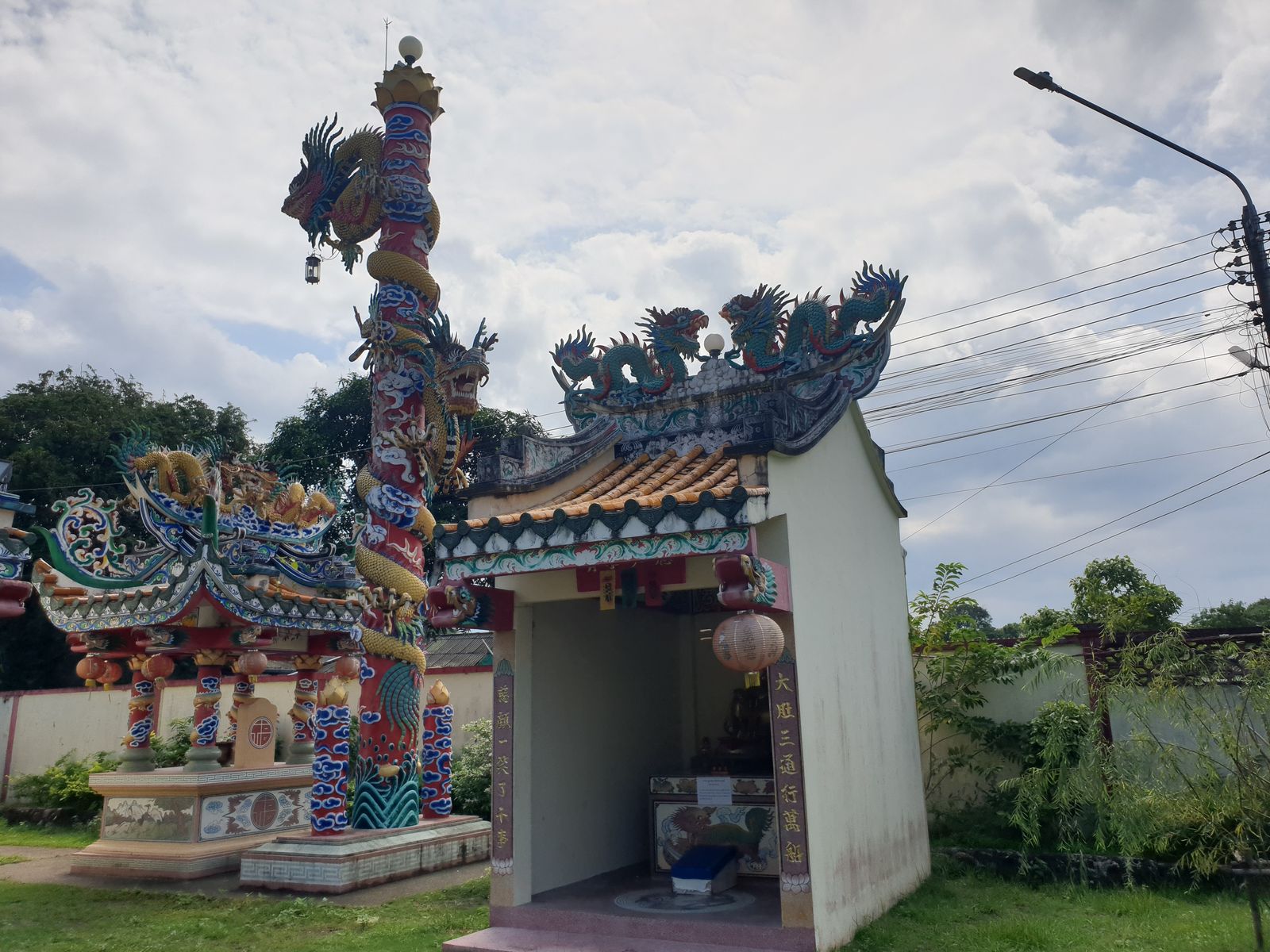 Der Blick nach oben ist immer der Hammer, so drücke ich es einfach mal aus. Die Kabel, welch ein Gewirr und alles funktioniert tadellos. In den schmalen Gassen ist es still und so erreichen wir den chinesischen Tempel Hainan, der 1862 errichtet wurde. Allein der Weg zum Tor ist sehenswert. So wunderschöne Gemälde zieren die Mauern, dass wir immer wieder stehen bleiben und die Kunstwerke bewundern.