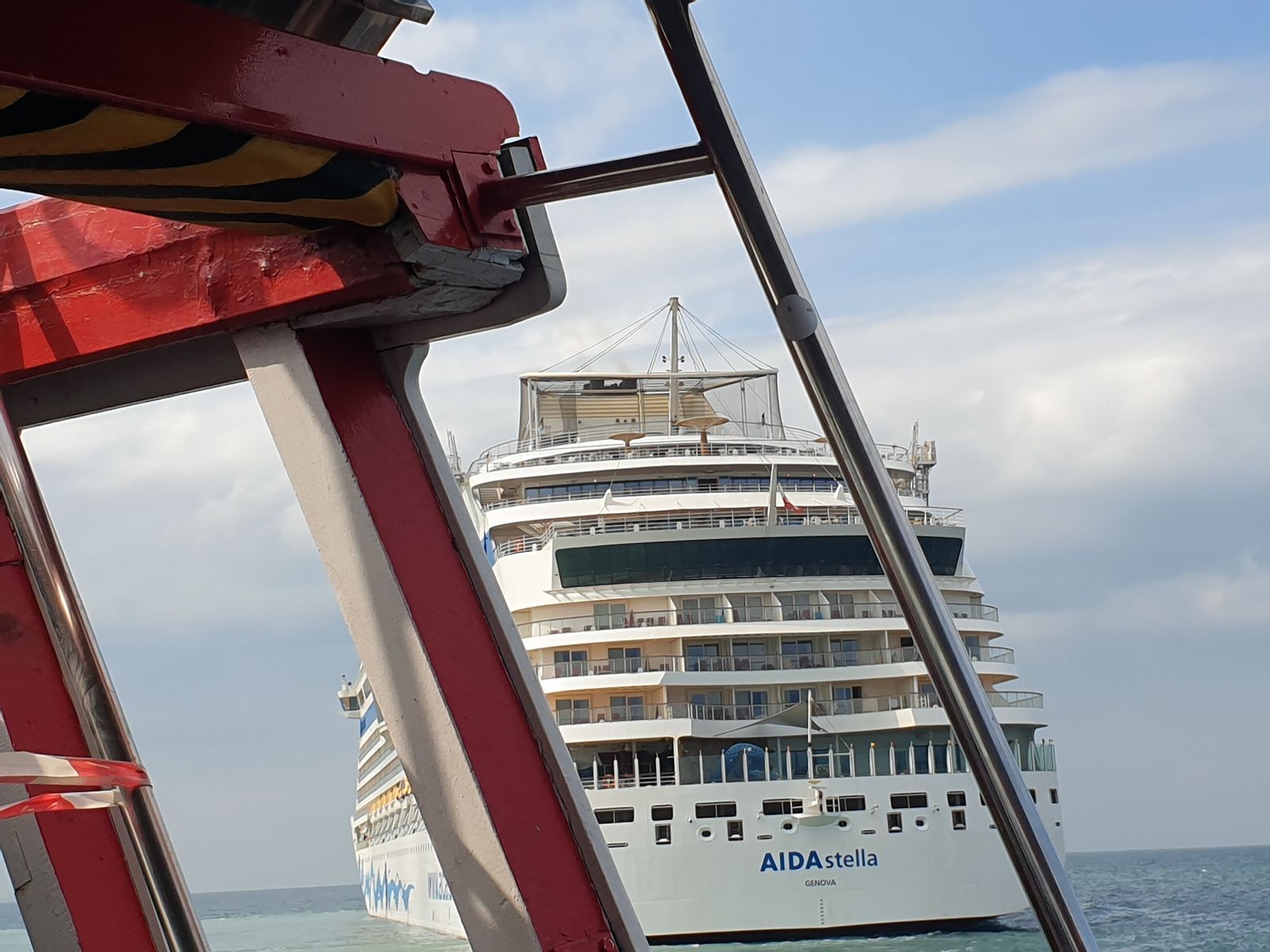 Der Tag scheint schön zu werden, die Sonne scheint, das Meer ist ruhig – so werden wir heute unser Frühstück draußen einnehmen und schauen zu, wie die Tenderboote hin und her fahren. Zurück auf der Kabine, sehe ich auf dem Balkon, wir haben einen Gast auf dem Geländer sitzen. Die Augen sehen schon ziemlich unheimlich aus und ich schließe schnell die Balkontür. Nicht, dass ich nachts noch auf Jagd gehen muss.