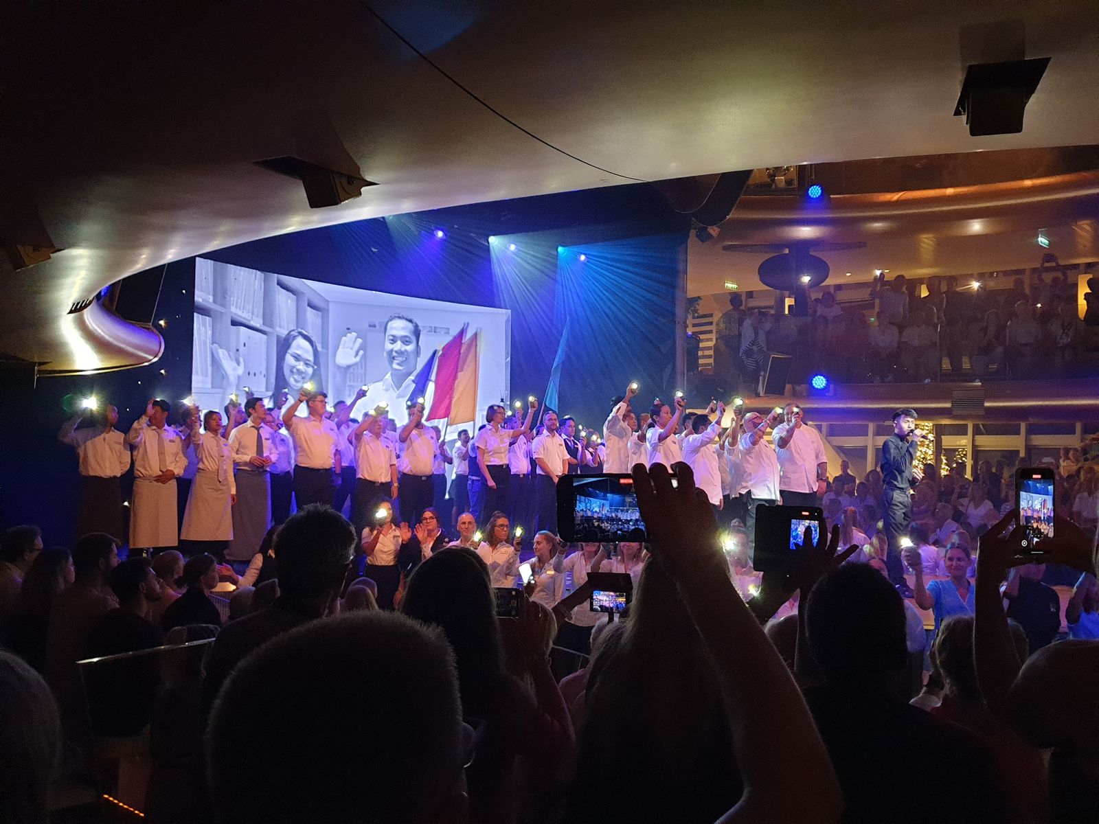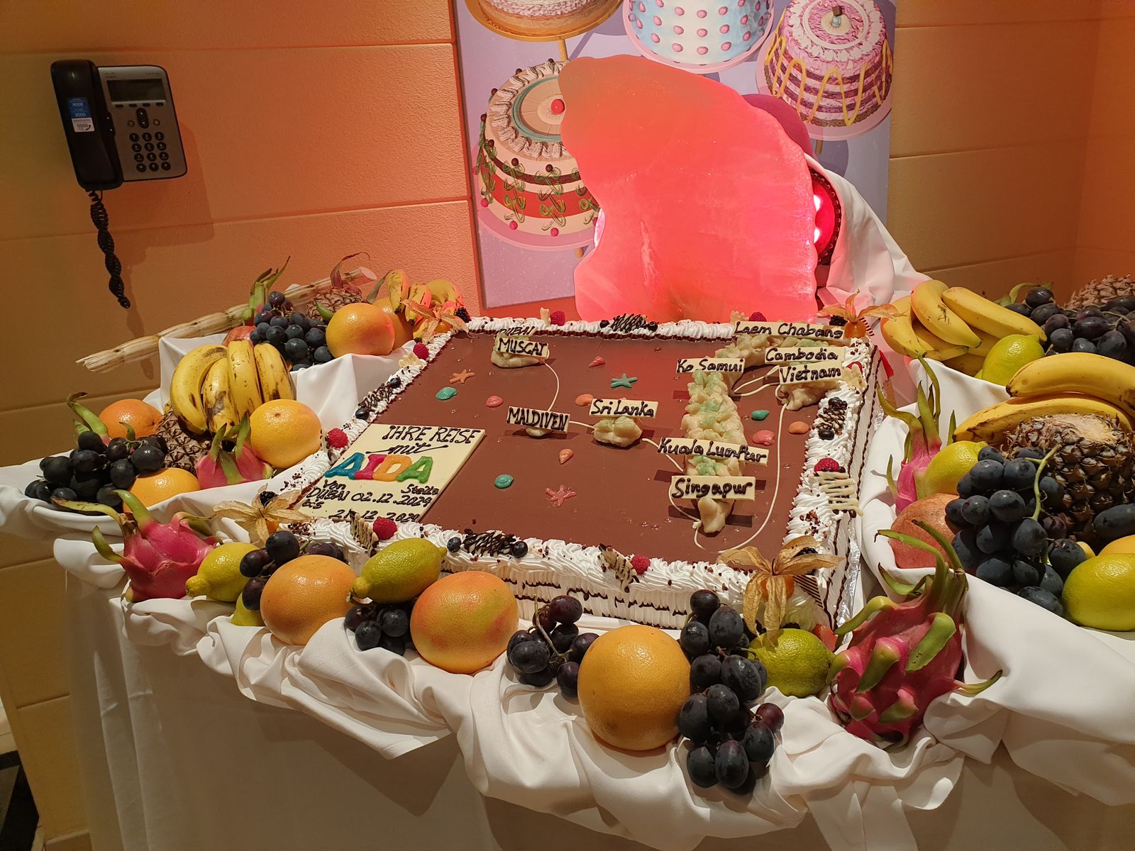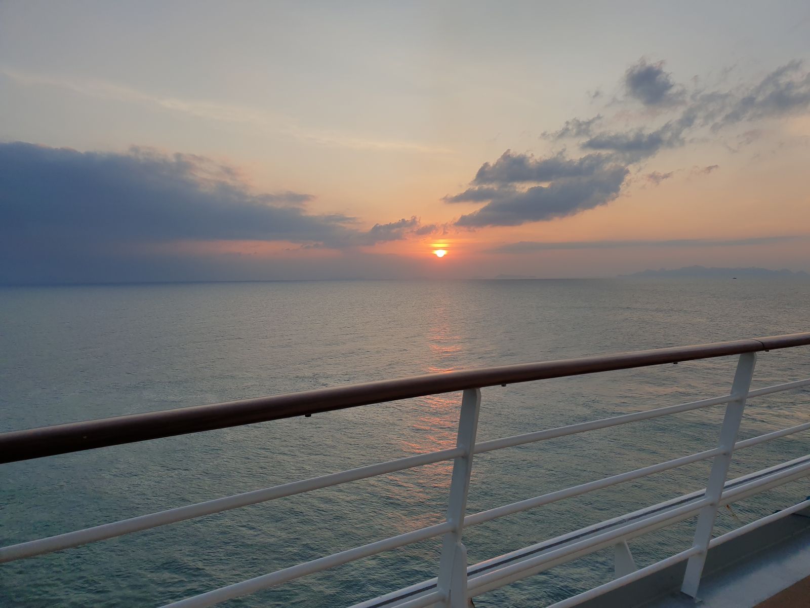 Auf dem Pooldeck wird noch getanzt, wir genießen den Blick auf den Mond und dann verschwinden wir abwärts. Kabine noch etwas aufräumen, einige Dinge im Koffer verstauen, denn morgen Abend in Laem Chabang werden wir unsere langjährigen Freunde treffen und wieder zusammen zum Jomtien Beach fahren. Da möchte ich doch nicht den Abend verkürzen, nur weil der Koffer noch gepackt werden muss. Da spiele ich nicht mit.