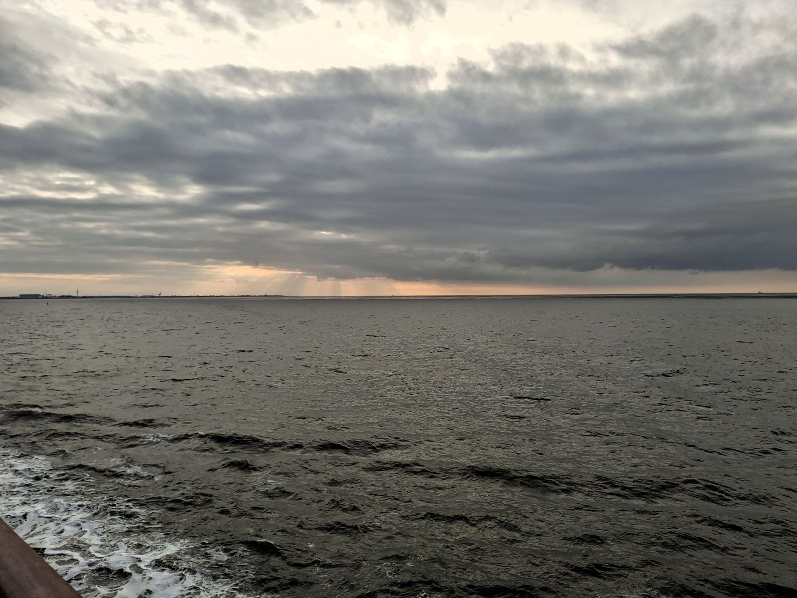 Später gab das obligatorische Willkommen mit Sekt, draußen auf dem Pooldeck, die magischen Worte „Sie haben Urlaub!“ hatten wir aber verpasst. Danach gab es endlich mal wieder eine Poolparty, wir sind meistens in der Vorsaison unterwegs gewesen, das Wetter zu der Zeit war fast nie so das es Draußen Veranstaltungen gab. Auch heute Abends war es frisch, spätestens als Cuxhaven passiert war und es in die Deutsche Bucht ging. Die Musik AIDA-typisch 90er/00er, in der Anytime Bar lief zeitgleich der gleiche Sound, die Auswahl der Hits nicht unbedingt meins, aber die Party draußen hat mir gut gefallen. So schön und friedlich der Abend.