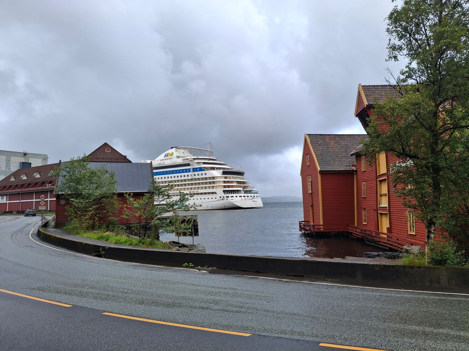 Der Wecker klingelte um 08:30 Uhr, Zeitgleich fuhr die Luna in Bergen ein, unterquerte die Askoy Brücke. Das anschließende Anlegen war wohl fraglich, hat aber geklappt, ein Schlepper stand bereit. Die Kreuzfahrtschiffe „Viking Neptune“ und „Viking Saturn“ hatten es ebenfalls nach Bergen geschafft.