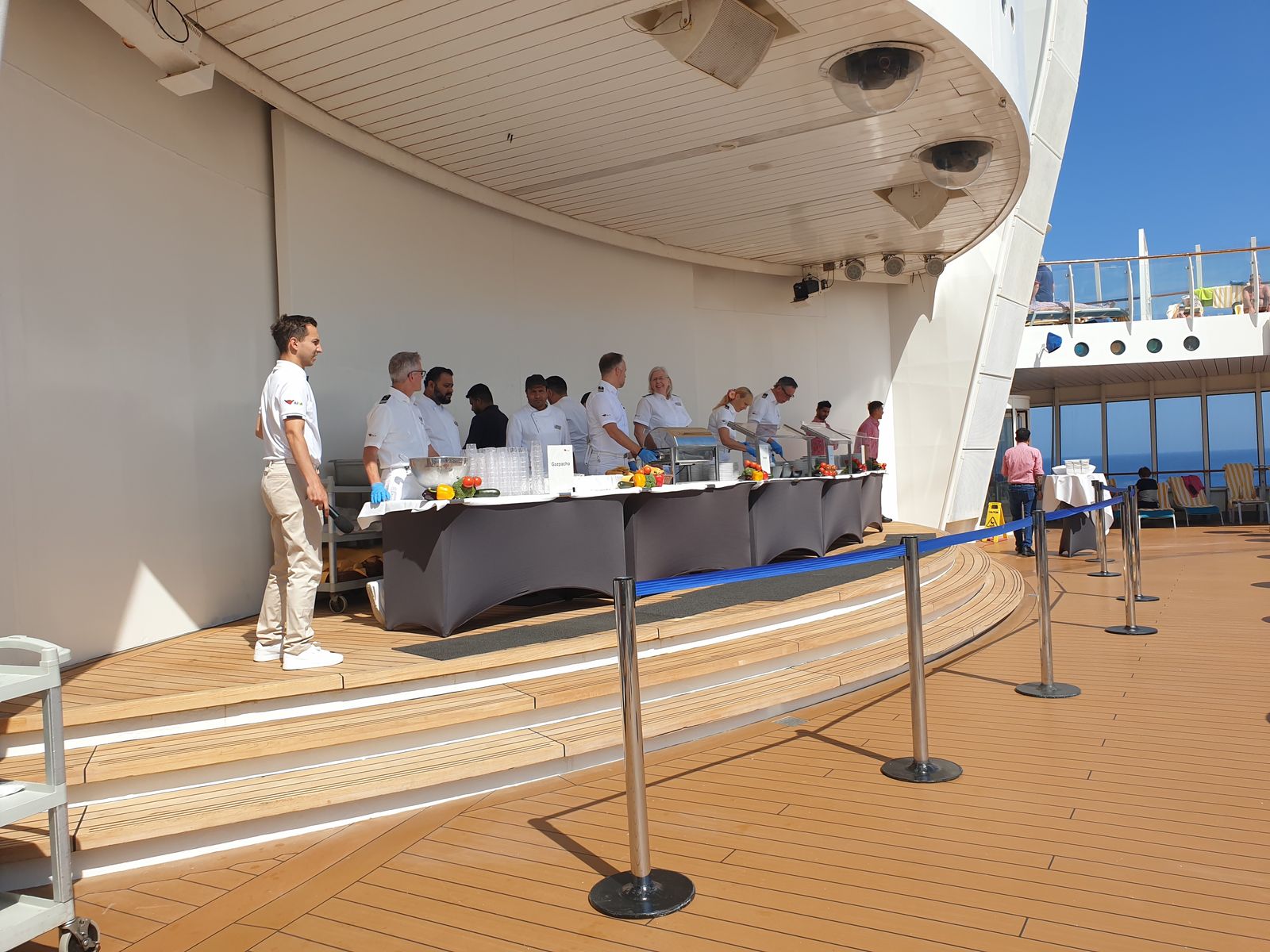 Das Tagesprogramm ist gespickt mit Veranstaltungen wie Vorträge und Workshops. Zur Mittagszeit sind die Offiziere wieder im Einsatz beim Poolbrunch mit griechischen Speisen.