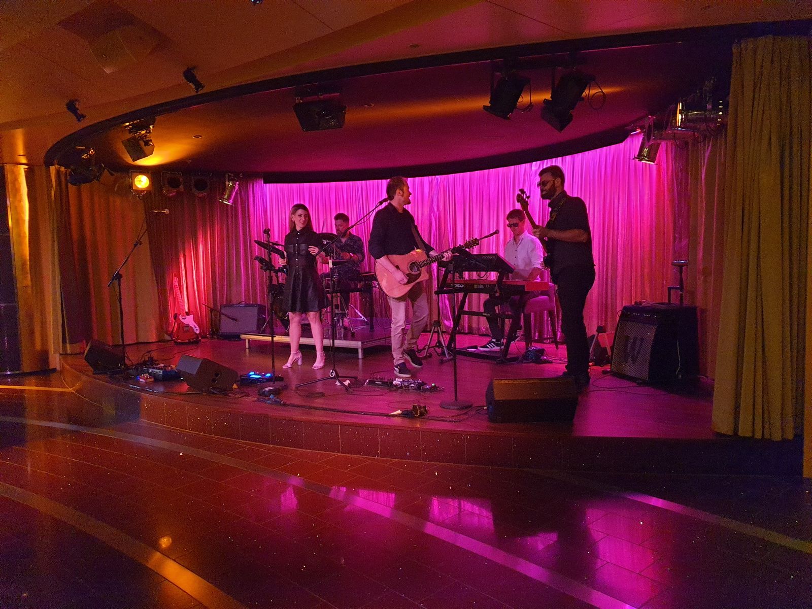Uns ist noch etwas nach Musik und so sitzen wir gemütlich in der AIDAbar, wo die Band heute Abend mit dem Gitarristen und Sänger Bratislav auftritt und wie es aussieht, haben sie viel Spaß miteinander.