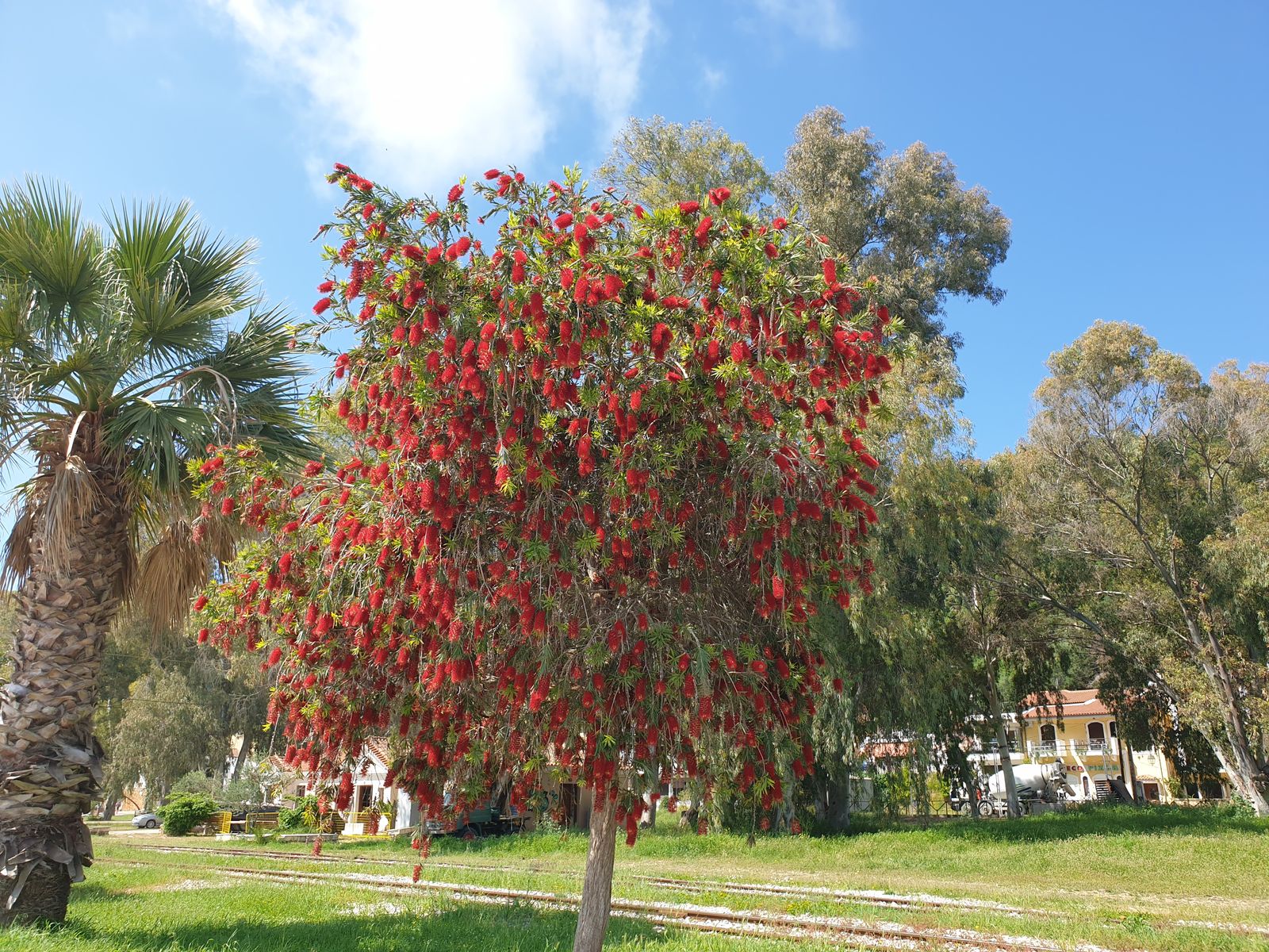 Die Bebauung wird spärlicher und so entscheiden wir uns für einen kleinen Gang runter ans Wasser. Als ich die Schienen sehe, fällt mir ein, man kann statt mir dem Bus oder Taxi auch mit dem Zug nach Olympia fahren.