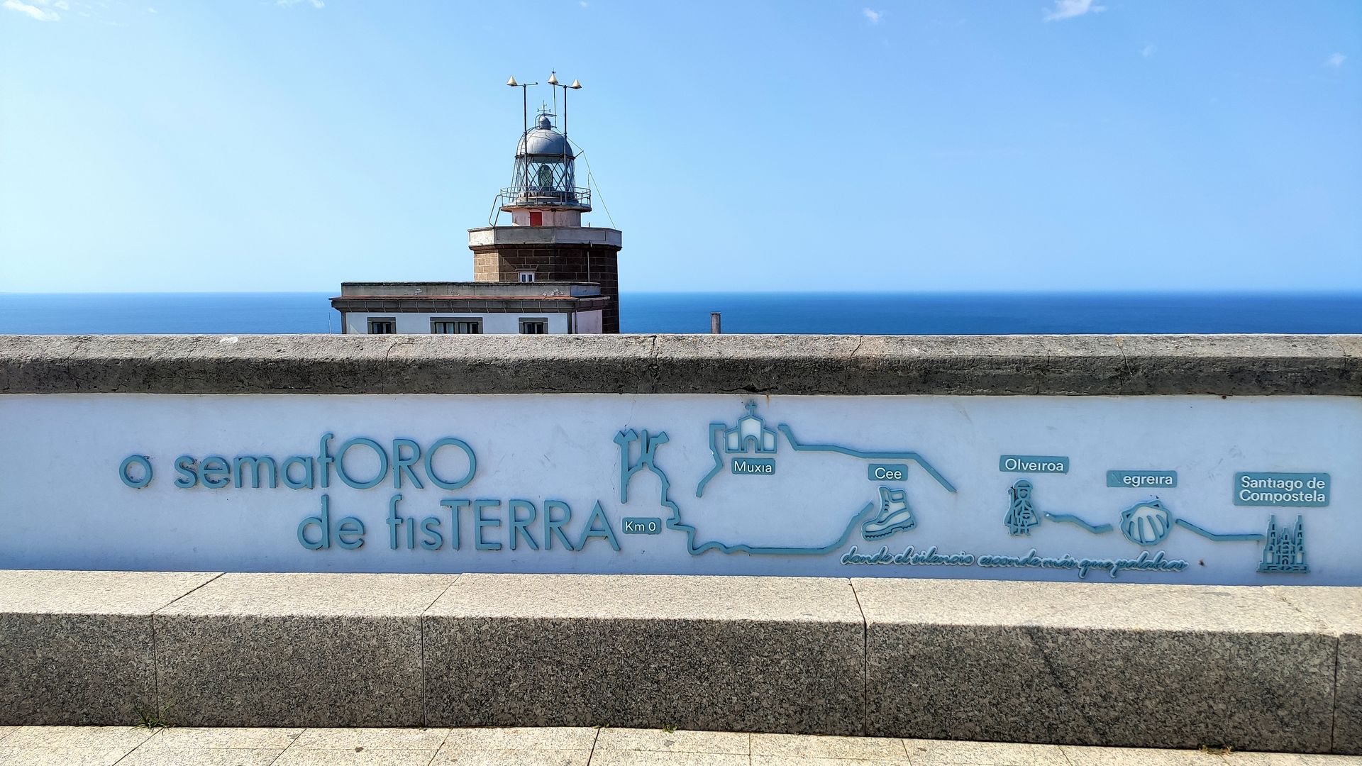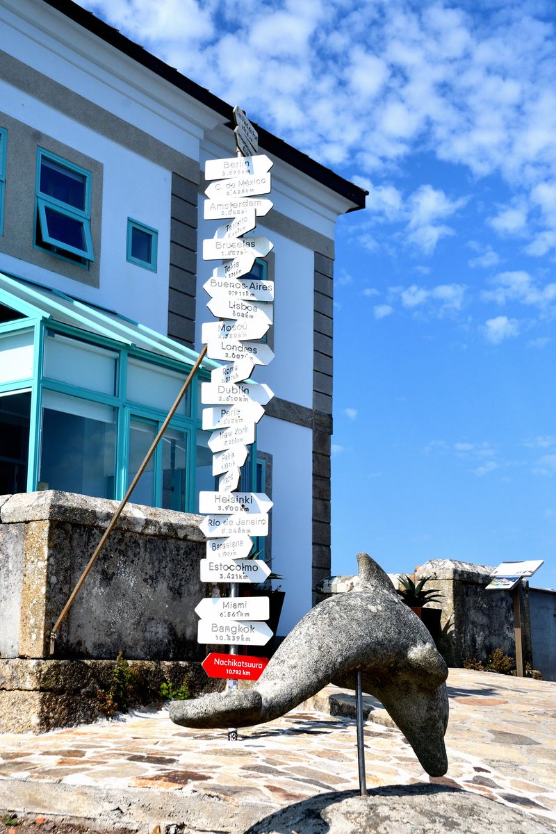 Vom Kreuz aus hatten wir einen tollen Ausblick auf die Bucht de Corcubión, den Leuchtturm und den Atlantik. Einige Meter weiter wurde bestätigt, dass wir uns auf dem richtigen Weg befanden.