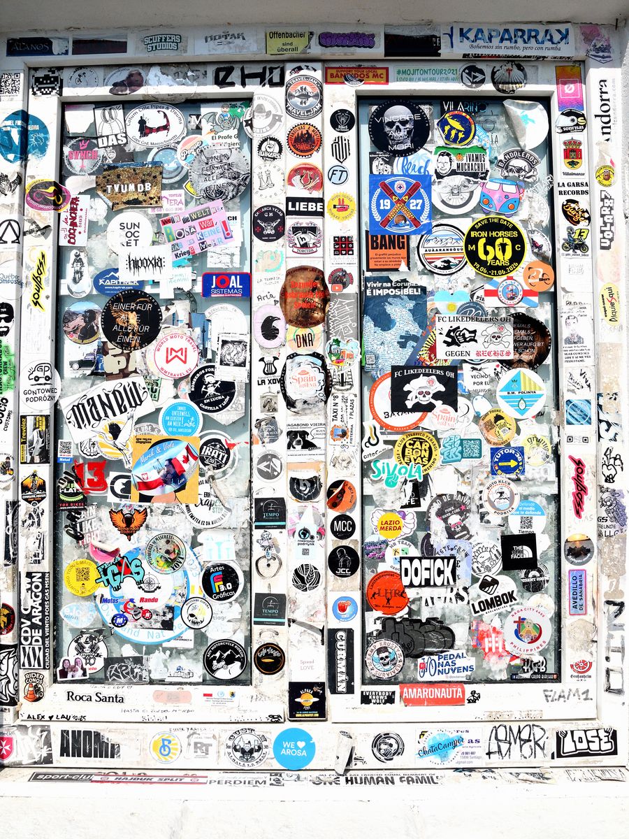 Der Leuchtturm ist das am zweithäufigsten besuchte touristische Ziel Galiciens. Nicht nur Einheimische reisen hierhin, auch Reisende aus aller Herren (sorry: und Damen) Länder. Wir sahen es – eine voll beklebte Tür auf dem Gelände des Leuchtturms.