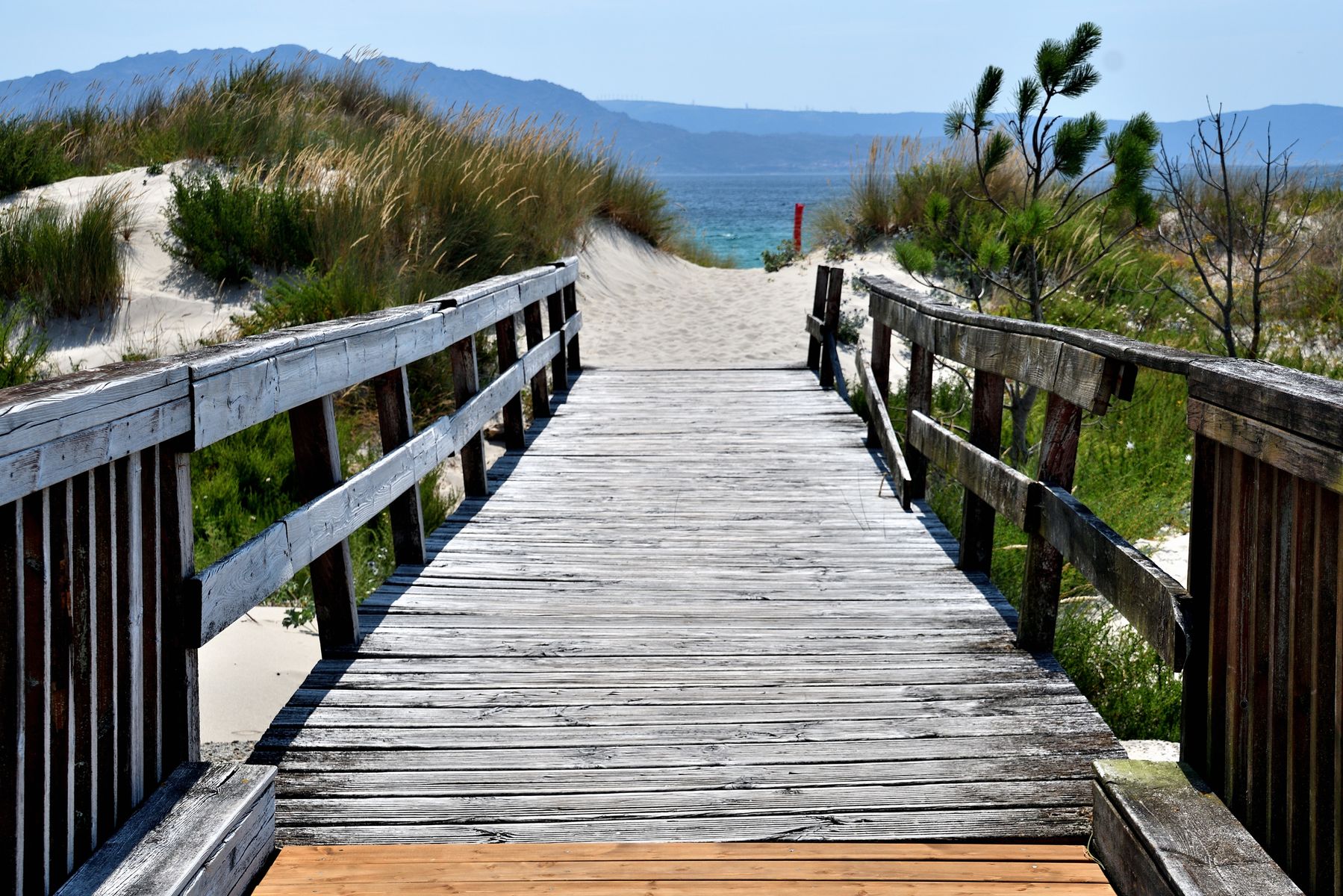 Richtig – wir befanden uns im regenreichen Galicien. Bevor wir den Strand betreten konnten, musste der Rio Grande (echt!) überquert werden. Über eine Brücke.